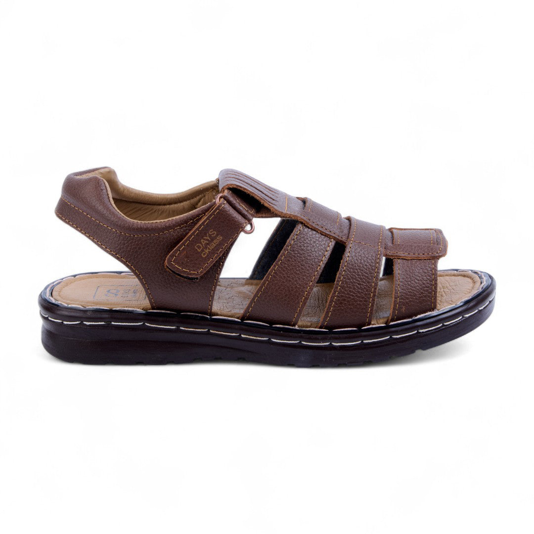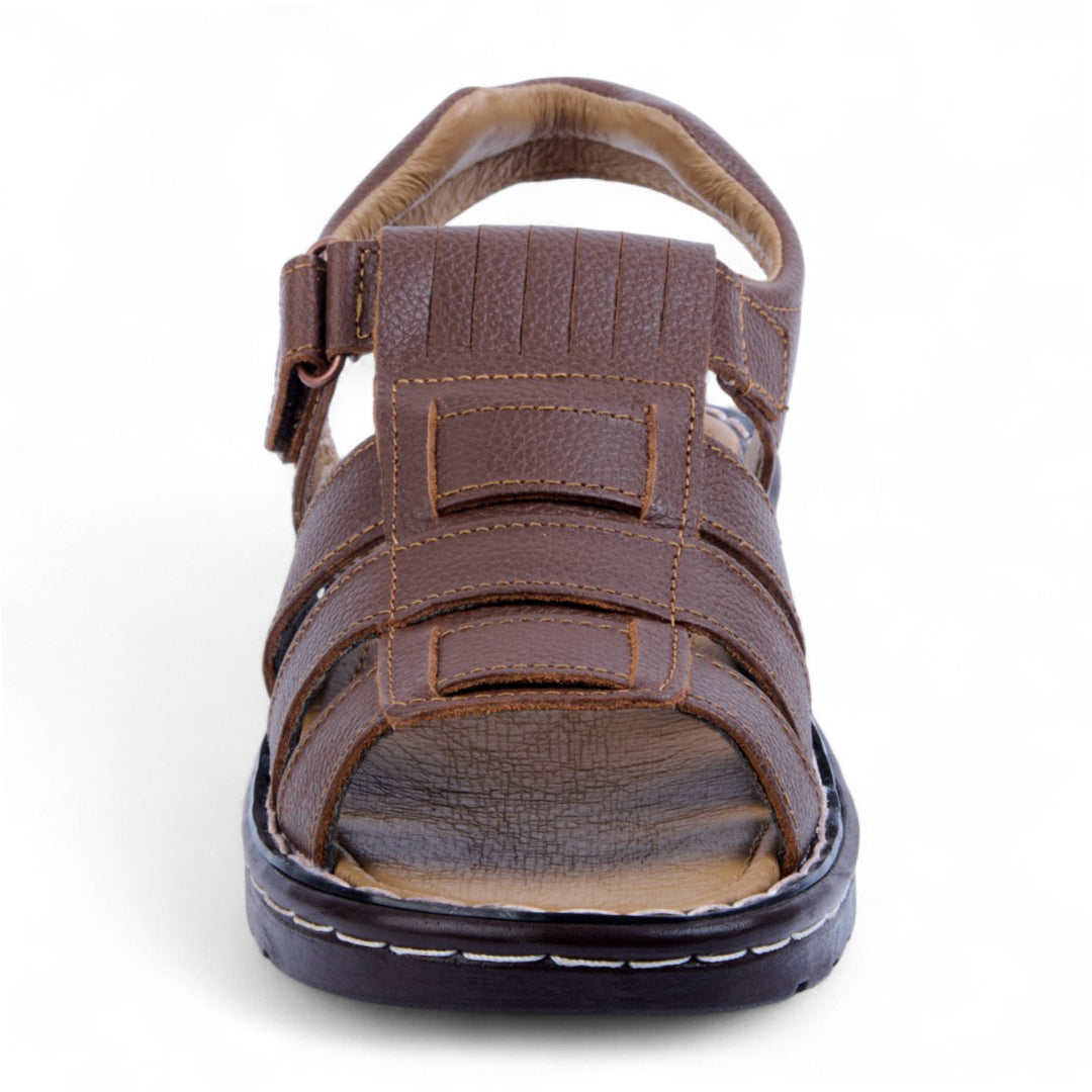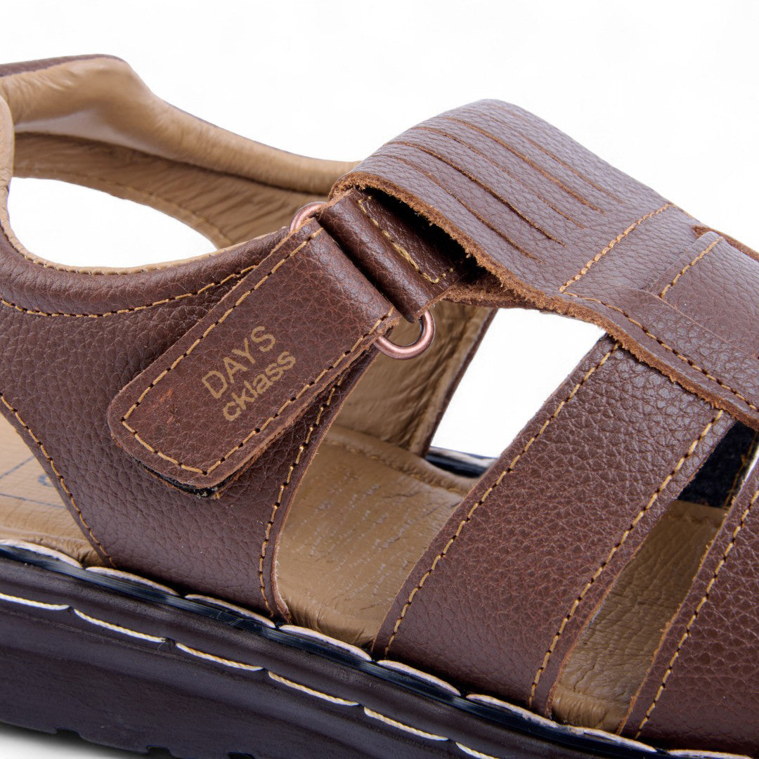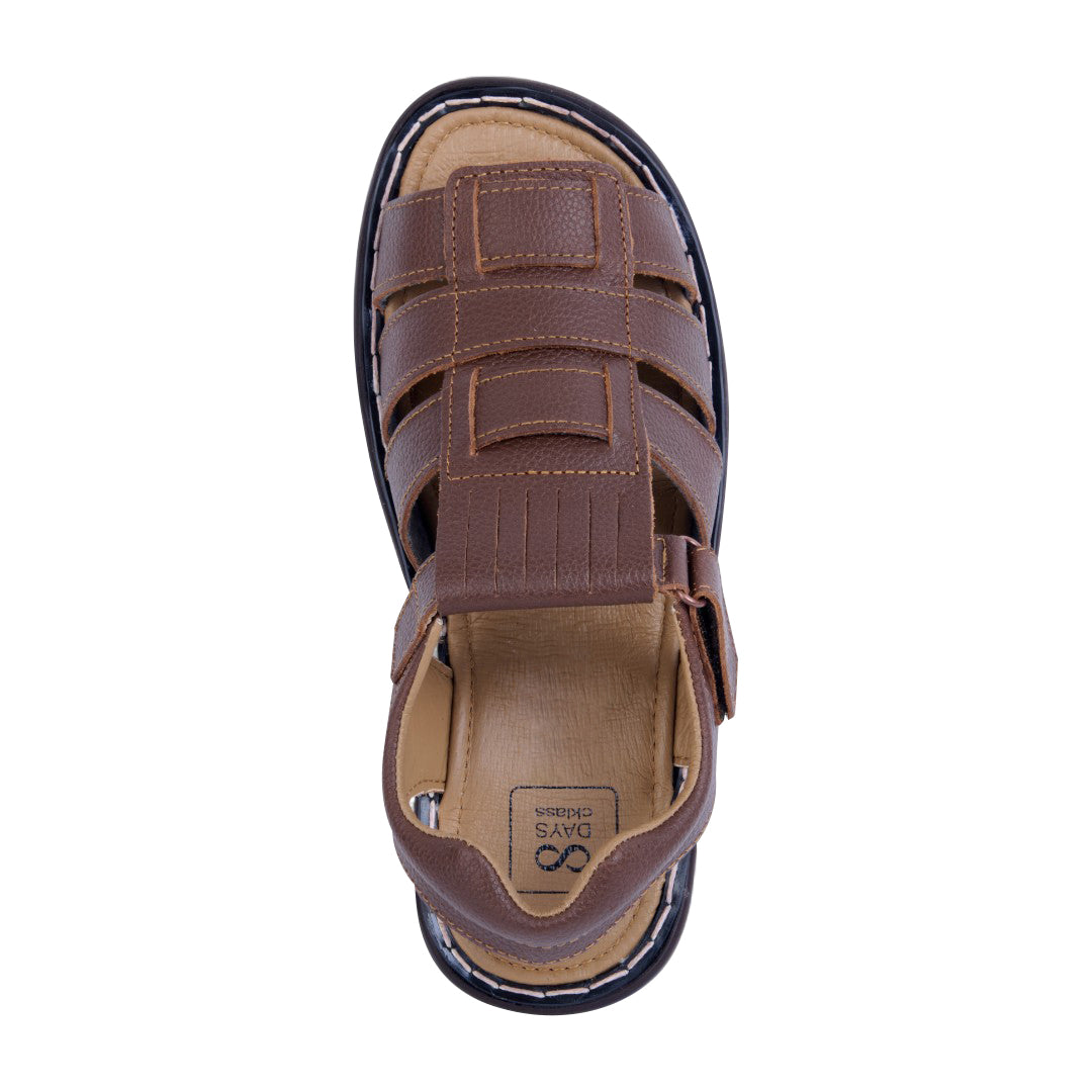 Sandalia color miel de piso confeccionada en piel natural con suela cosida a mano y sistema de cierre con contactel. Cuenta con plantilla de piel de cerdo acolchada que brinda suavidad y confort. Ideal para un estilo casual, artesanal y elegante.