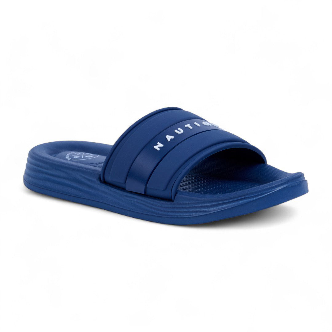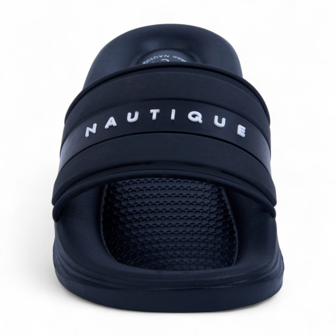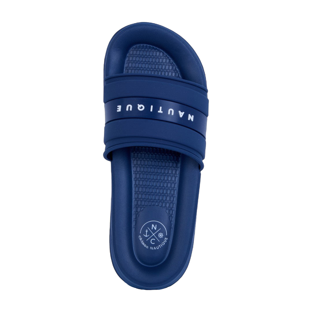 Sandalia de piso color negro con detalles en azul, confeccionada en material sintético. Cuenta con plantilla acolchada y suela ultraligera que ofrece máxima comodidad y flexibilidad al caminar. Ideal para uso diario, looks casuales o de descanso con estilo moderno y funcional.