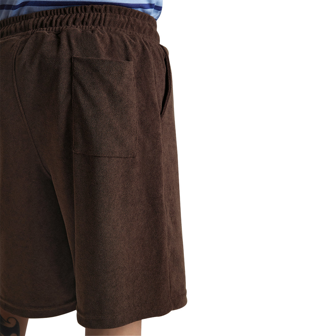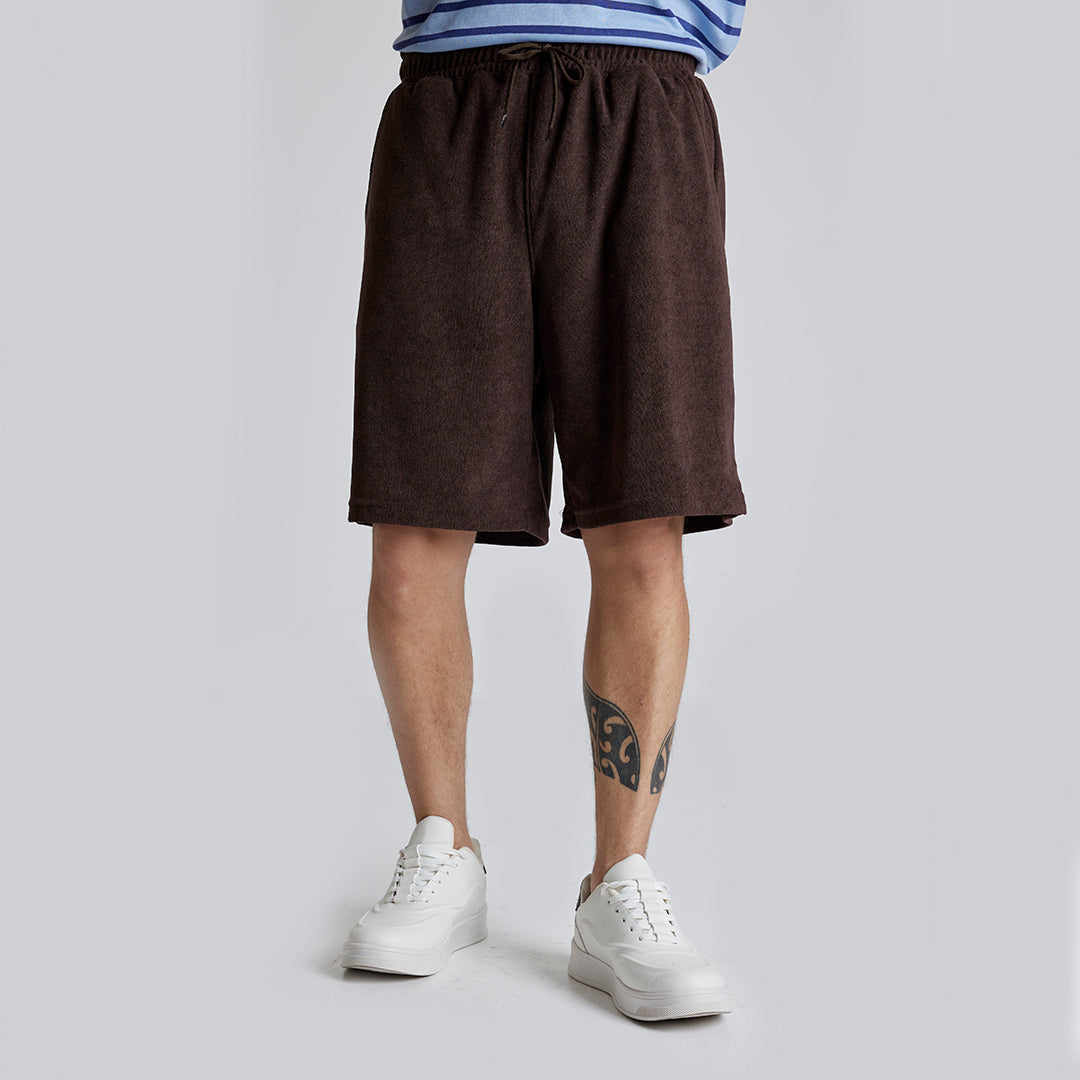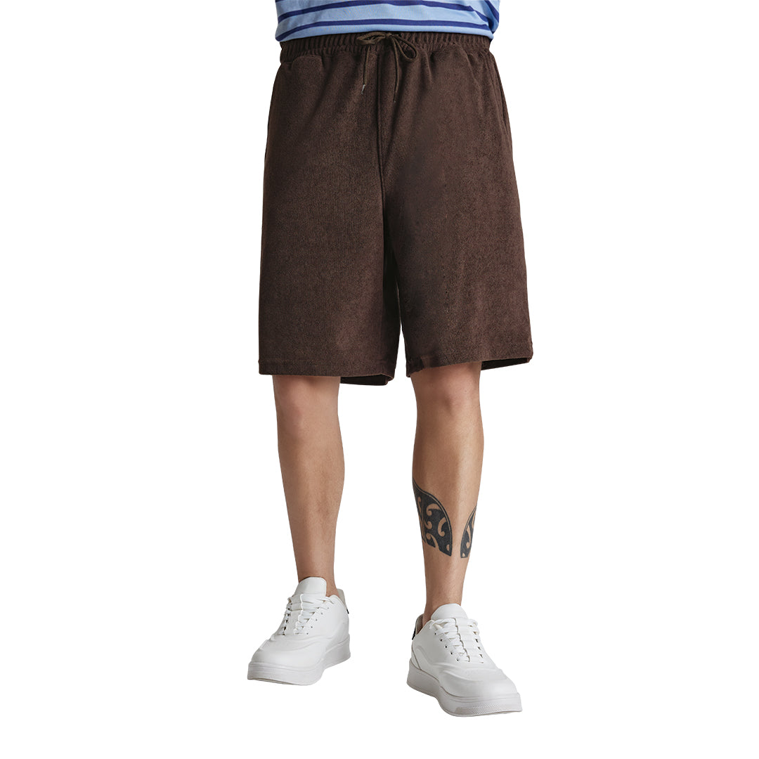 Short color café con textura tipo toalla y pretina elástica que se ajusta cómodamente a la cintura. Confeccionado en poliéster suave y ligero, ideal para un look casual, relajado o de descanso con estilo moderno y fresco.