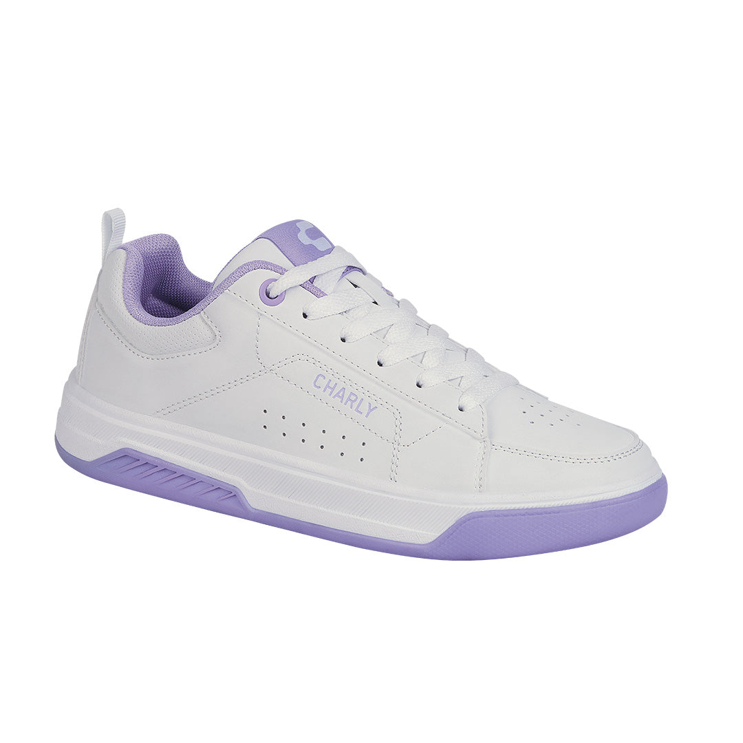 Tenis Charly para dama color blanco en material coagulado con cinta ajustable y jalador posterior. Incluye logo de la marca en lateral y suela ligera antiderrapante ideal para uso diario.