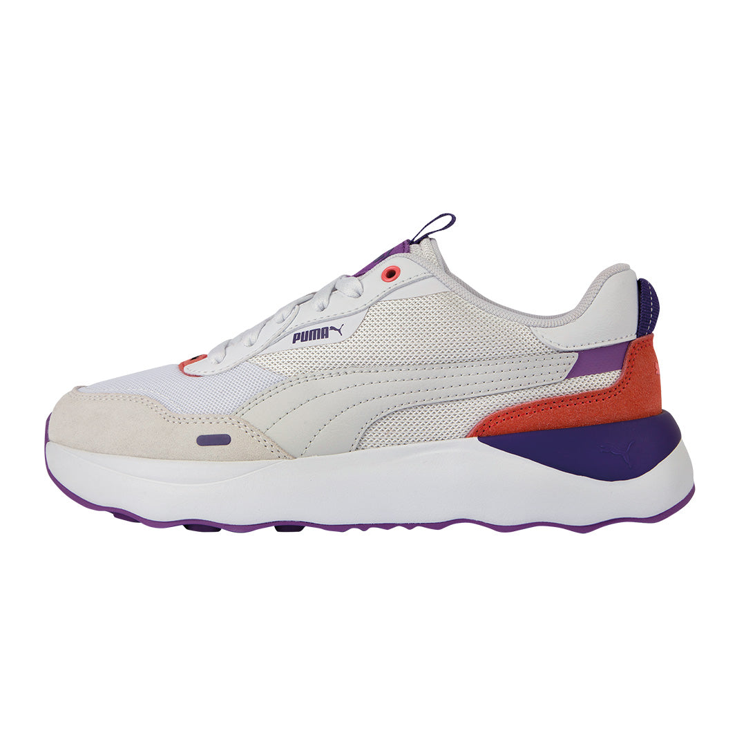 Tenis Puma multicolor para dama, con suela ancha, cintas ajustables y franja lateral distintiva. Diseño vibrante y cómodo, ideal para looks casuales o deportivos, ofreciendo estilo y funcionalidad.