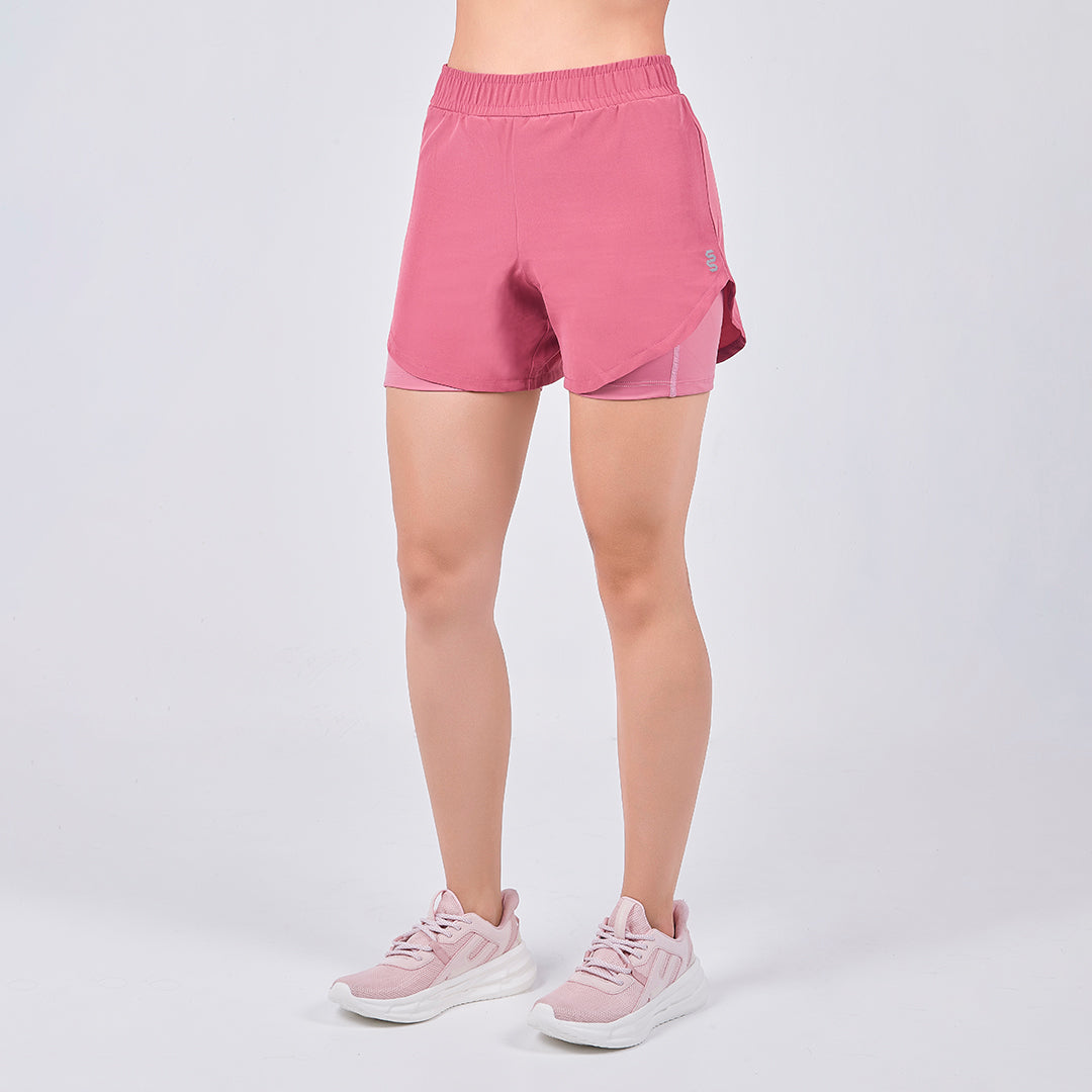 Short color rosa SuperSport con biker interno, pretina ajustable y logo frontal; cómodo, flexible y perfecto para entrenamiento, uso diario o actividades deportivas.
