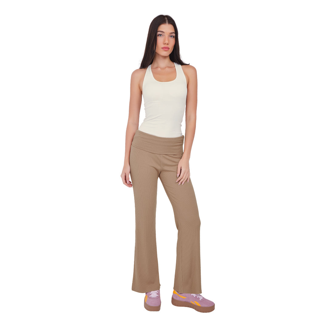 Tank top color ivory SuperSport sin mangas, con espalda racer back, cuello redondo y copas incluidas; diseño cómodo, elástico y perfecto para entrenar o uso diario.