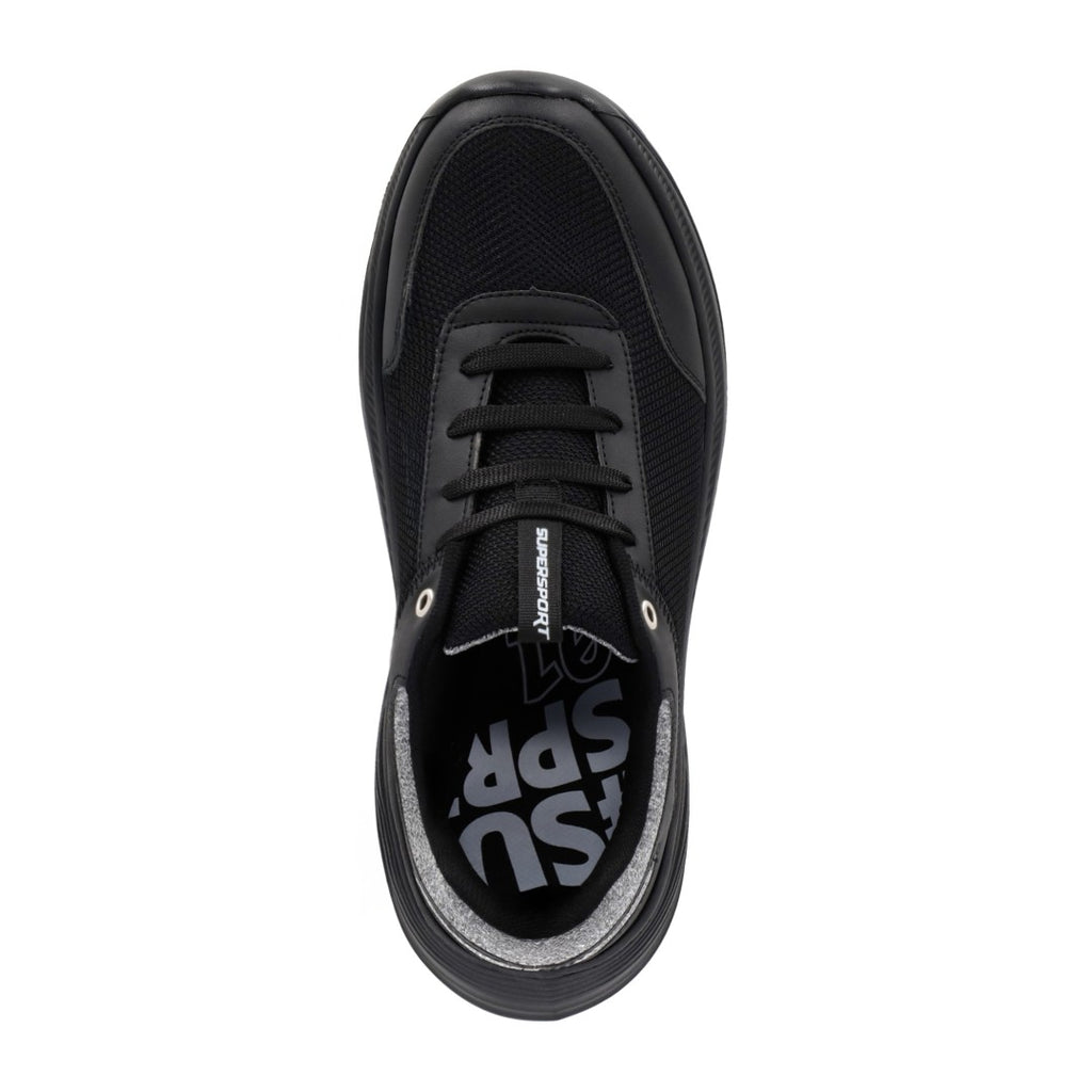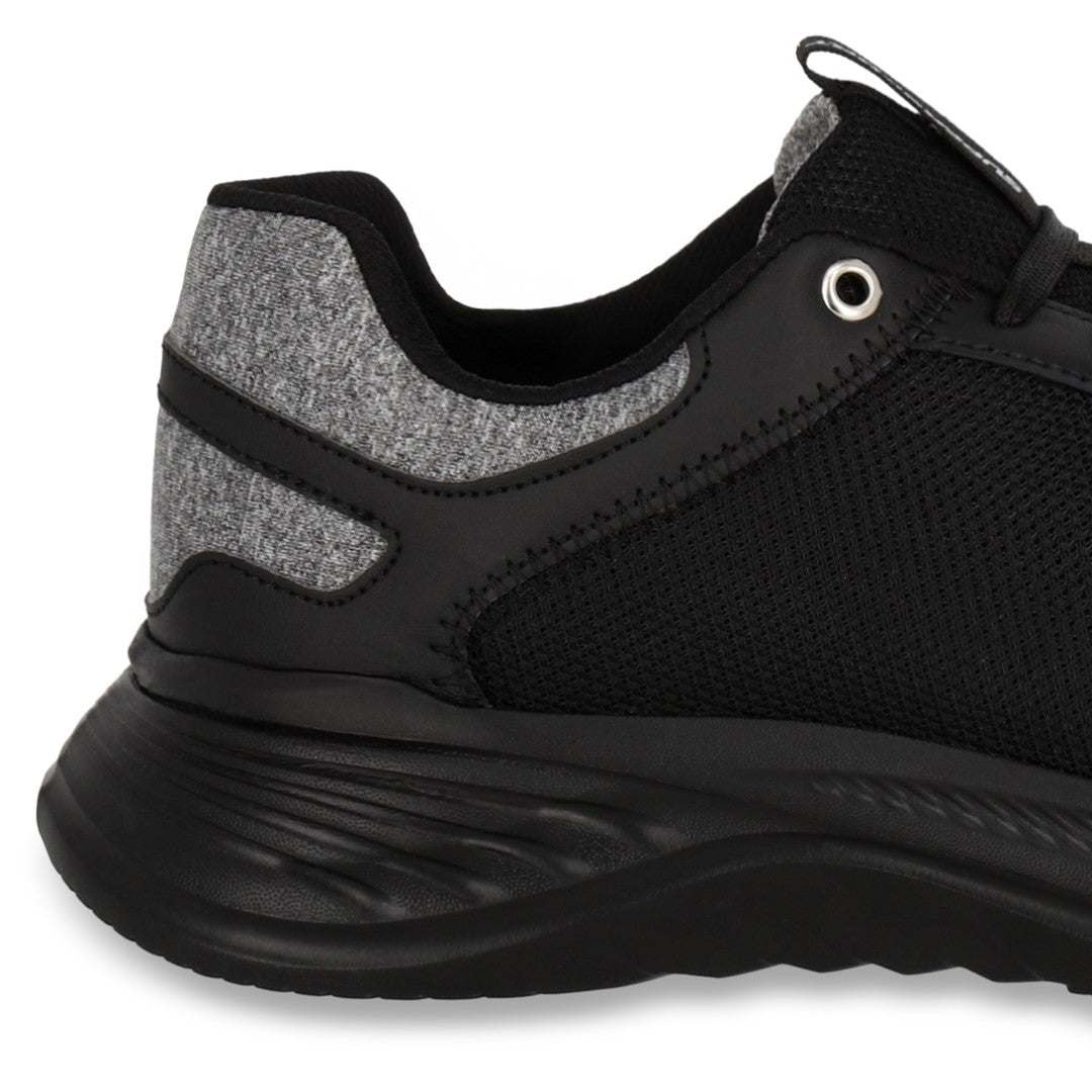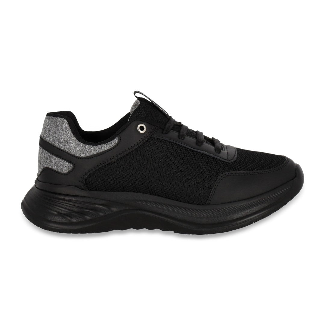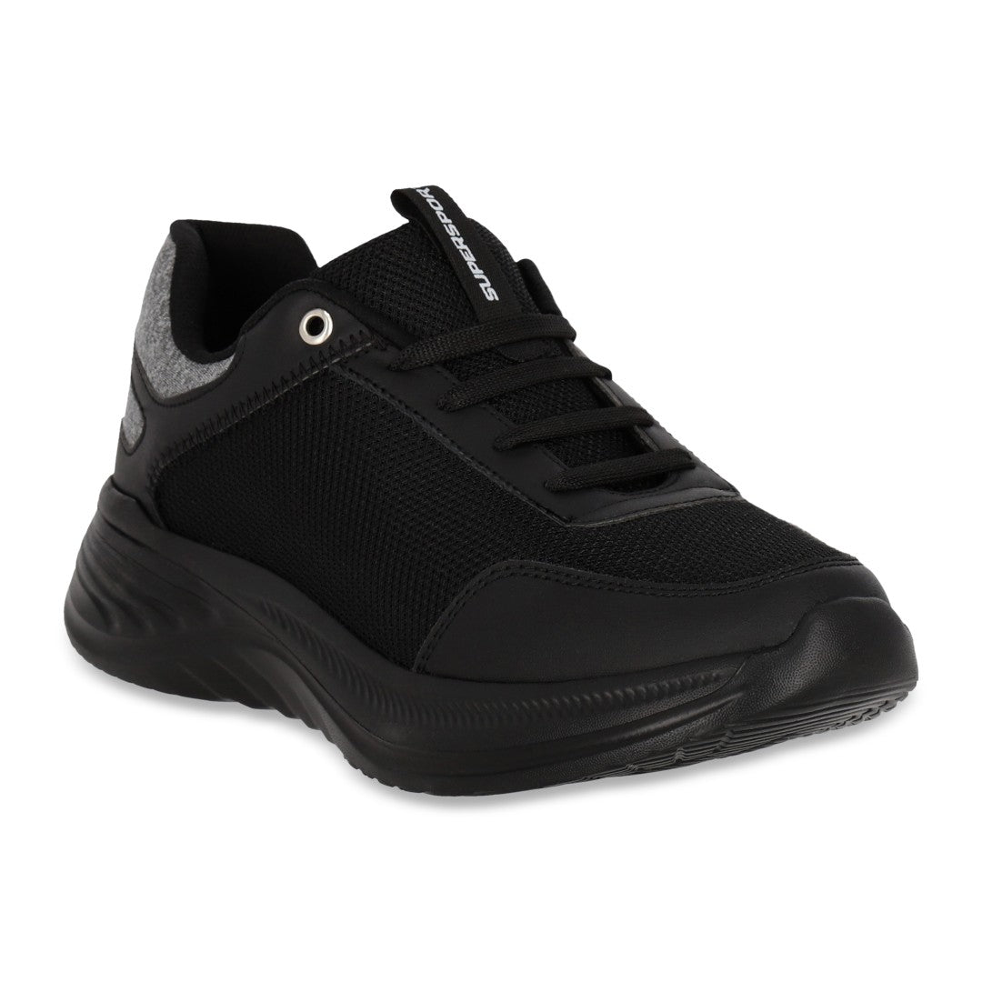 Tenis deportivo SuperSport para caballero en color negro, corte textil resistente con plantilla memory foam que asegura máxima comodidad en cada paso.
