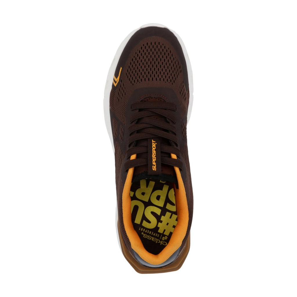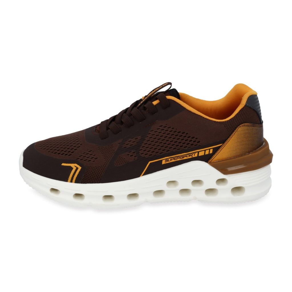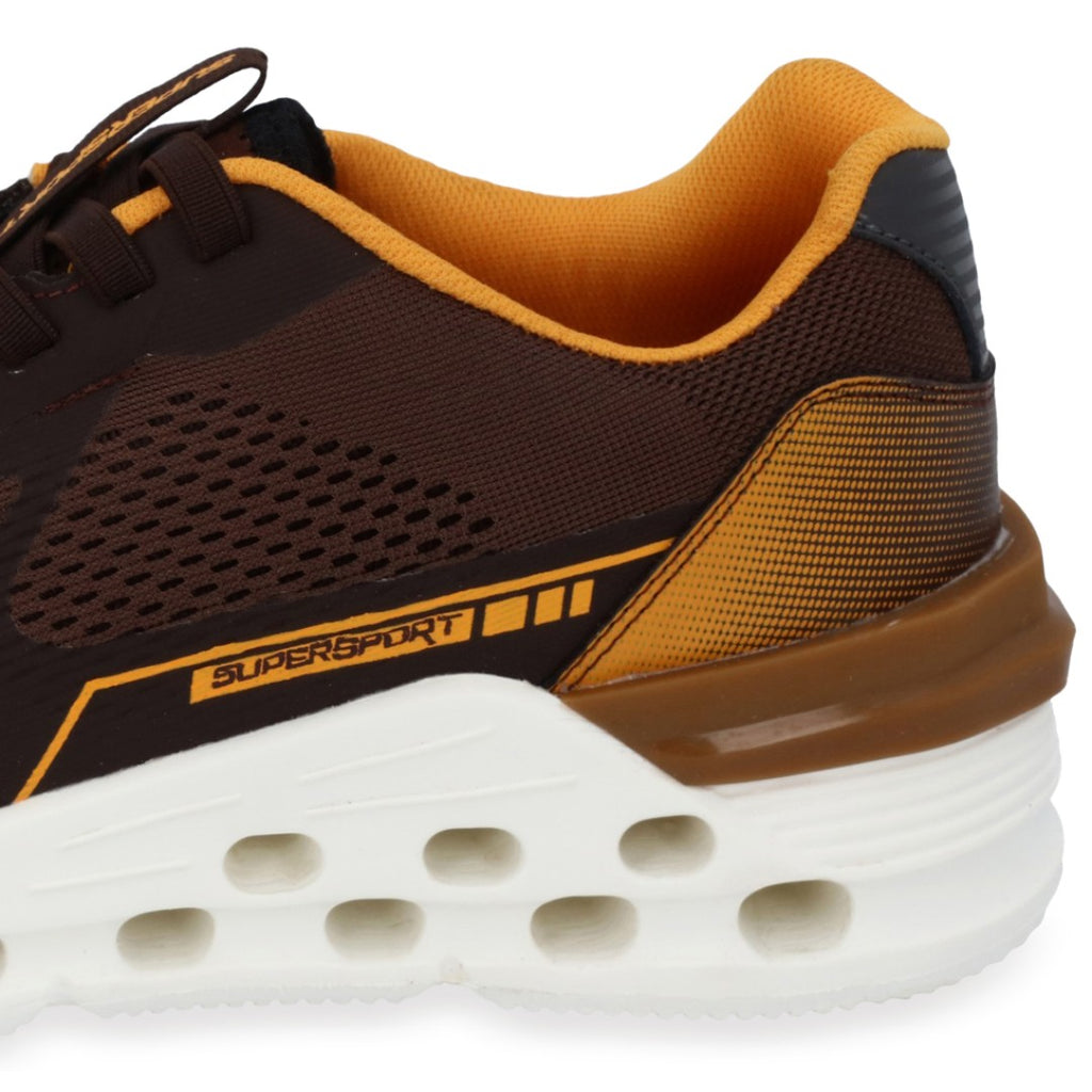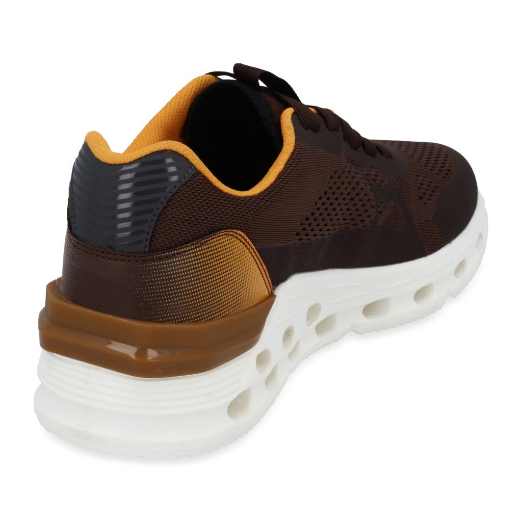 Tenis deportivo textil color café, suela antimpacto color beige y plantilla memory foam.