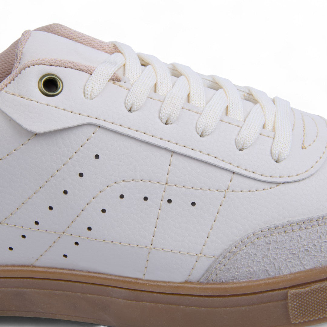 Dúo de tenis de piso confeccionados en material sintético con cintas ajustables y detalles tipo gamuza que aportan textura y estilo. Incluyen plantilla textil acolchada para mayor confort. Diseños en tonos hueso y café, ideales para looks casuales, urbanos o de diario.
