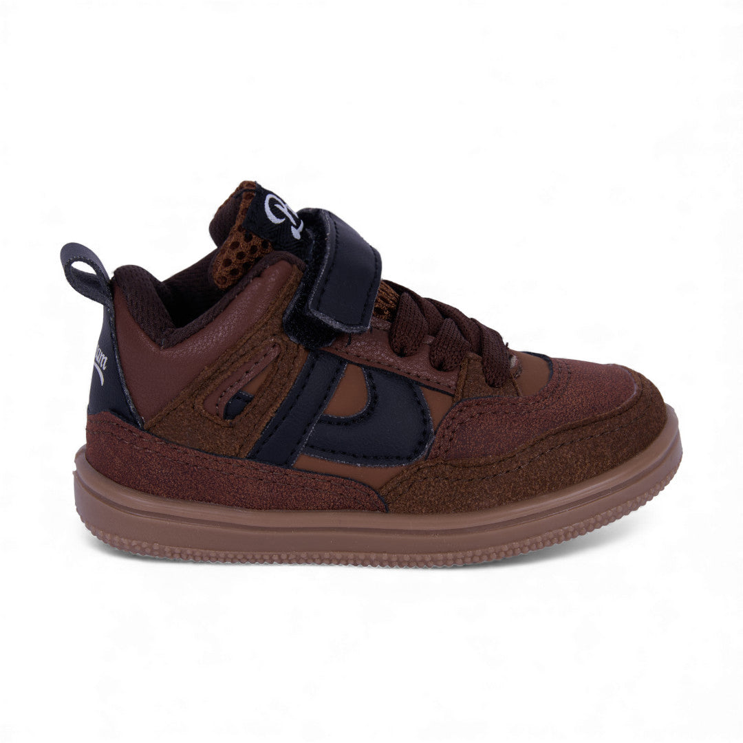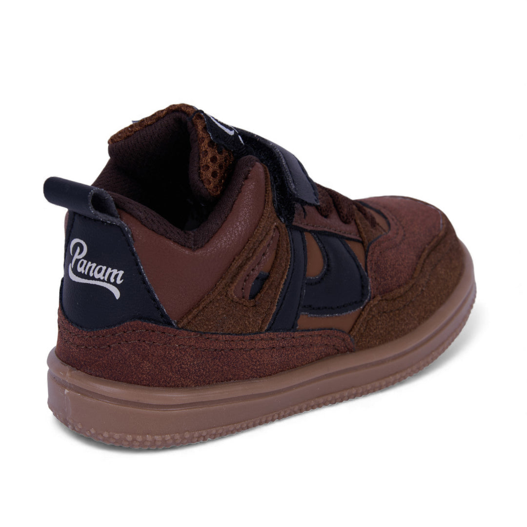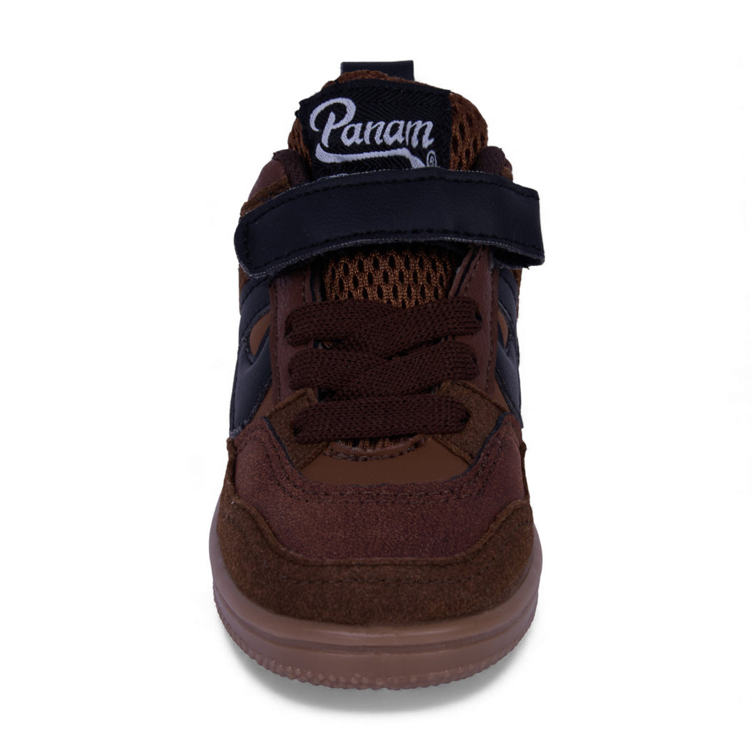 Bota Panam para niño en color café, elaborada en material sintético resistente con suela sintética de agarre seguro. Incluye velcro y cintas ajustables para un calce firme y práctico. Diseño cómodo, durable y perfecto para escuela, juegos y uso diario gracias a su estilo versátil y funcional.