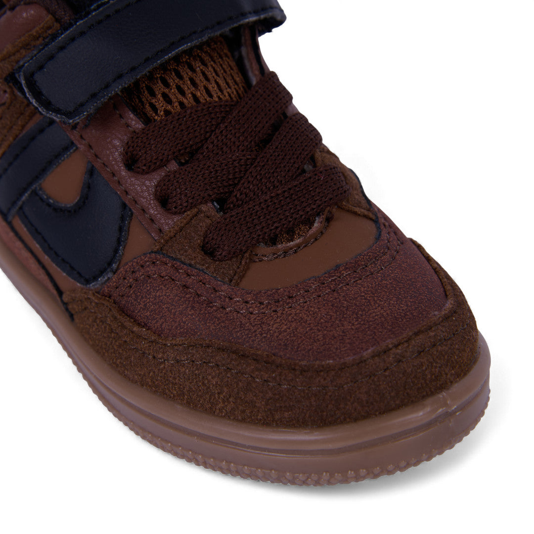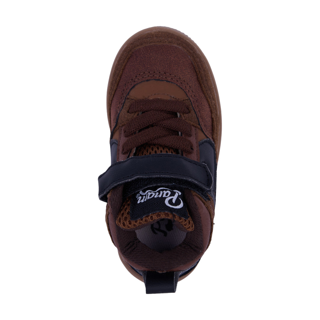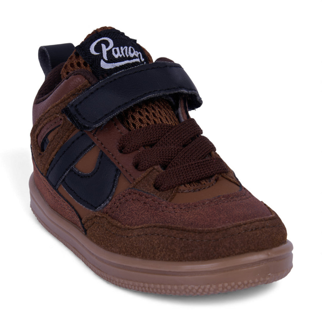 Bota Panam para niño en color café, elaborada en material sintético resistente con suela sintética de agarre seguro. Incluye velcro y cintas ajustables para un calce firme y práctico. Diseño cómodo, durable y perfecto para escuela, juegos y uso diario gracias a su estilo versátil y funcional.