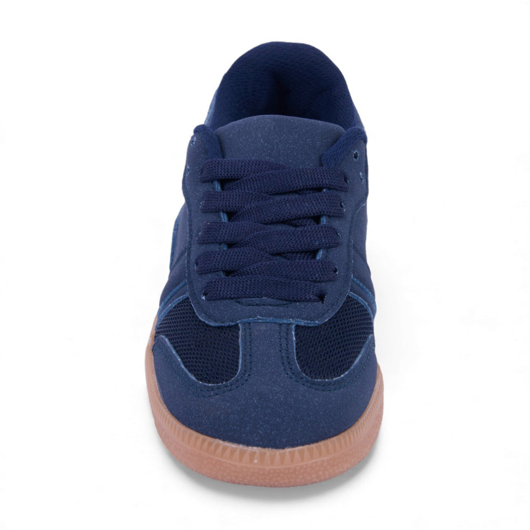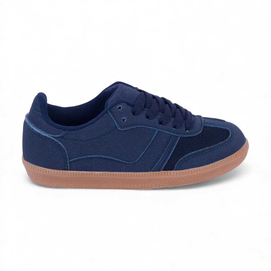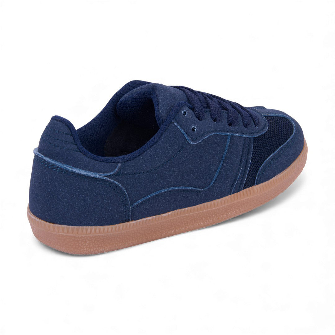 Dúo de tenis casual en colores marino y café con detalles en malla y cintas; ligeros, modernos y perfectos para uso diario o looks urbanos.