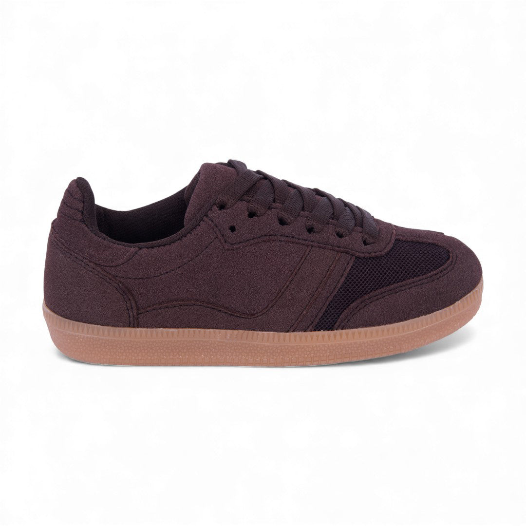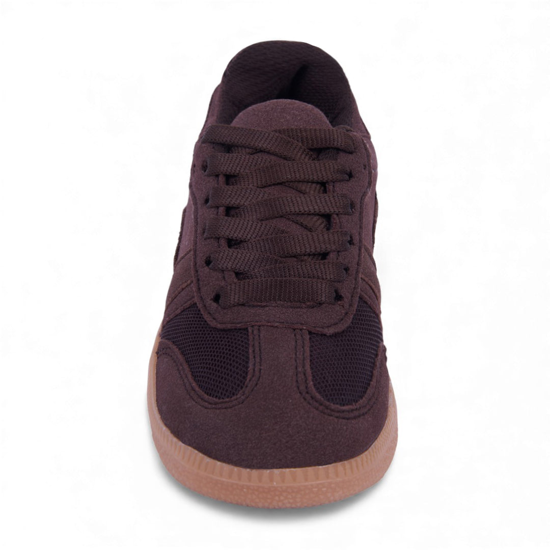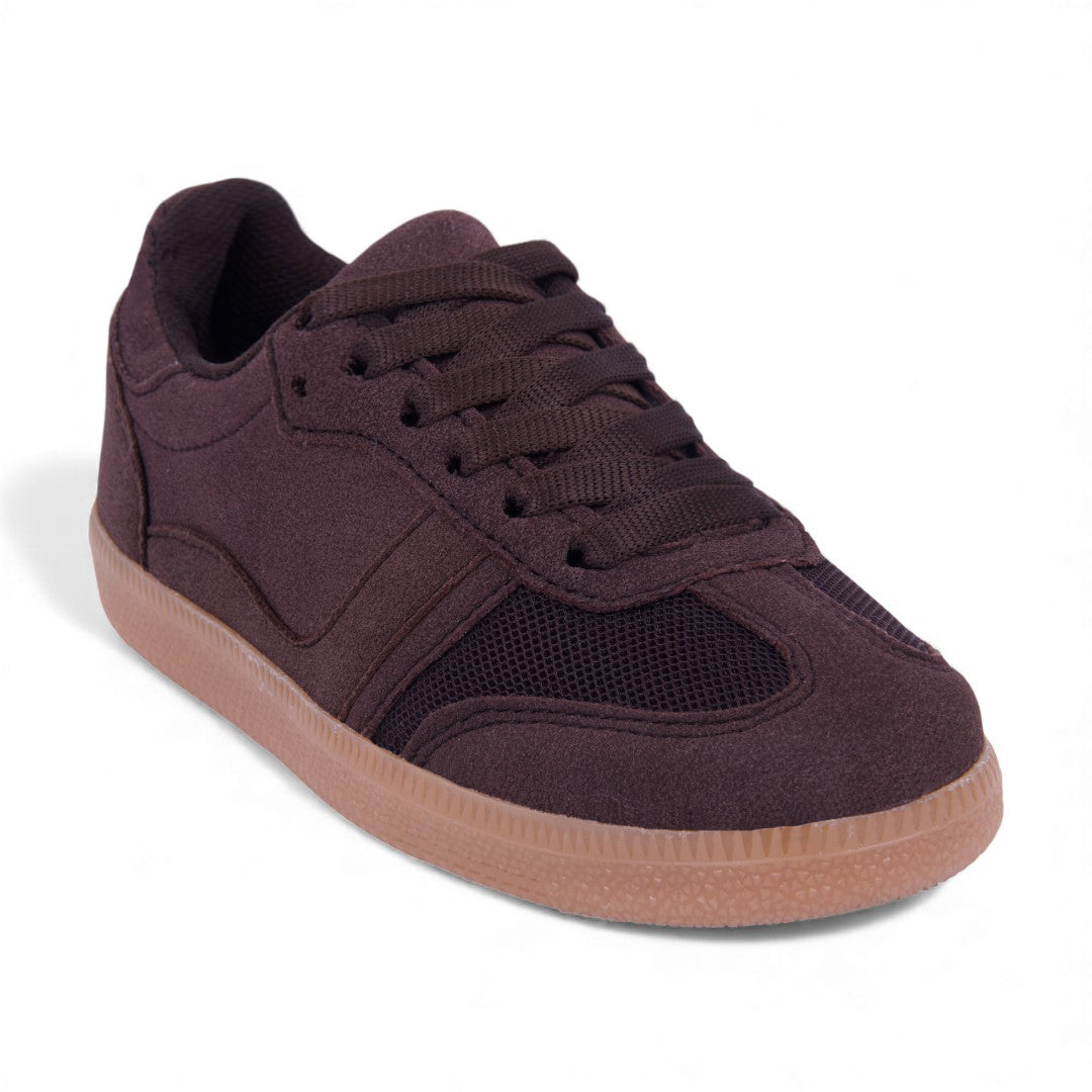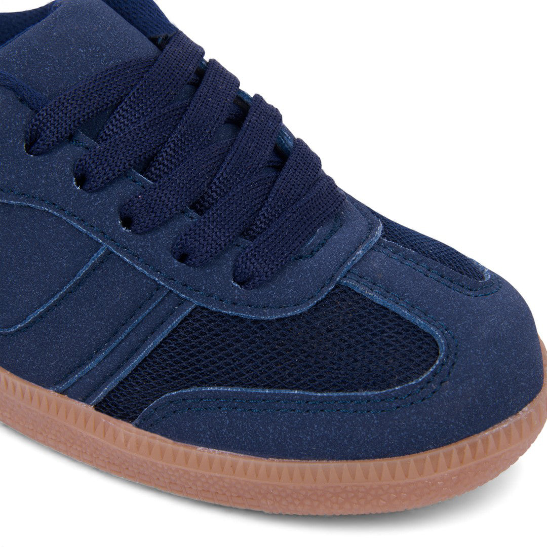 Dúo de tenis casual en colores marino y café con detalles en malla y cintas; ligeros, modernos y perfectos para uso diario o looks urbanos.