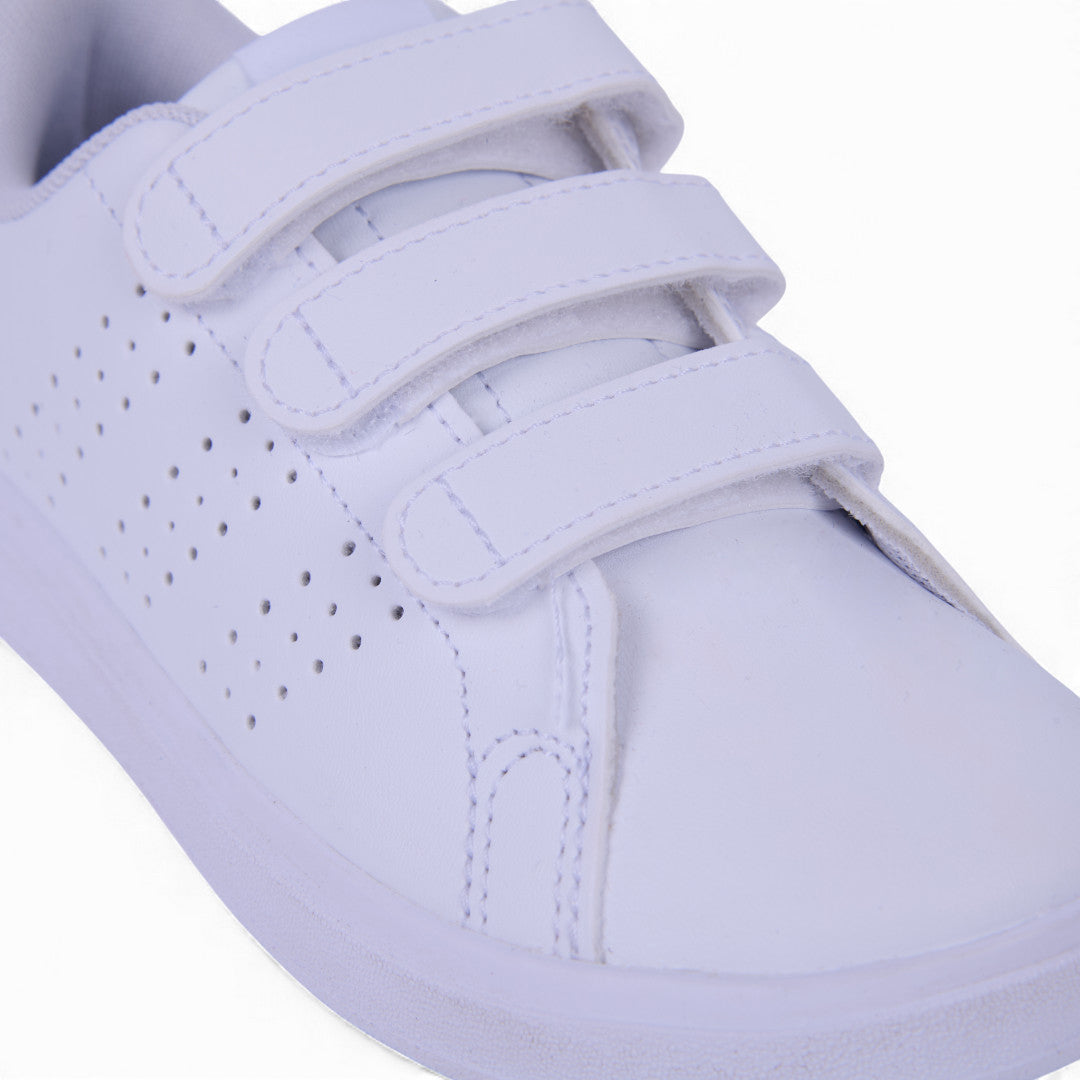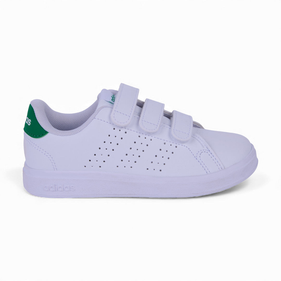 Tenis Adidas Advantage Base en color blanco, con diseño clásico y minimalista. Elaborados en corte sintético con tiras de contactel para un ajuste rápido y seguro. Forro textil suave que brinda confort durante todo el día. Ideales para outfits casuales o deportivos con estilo moderno.