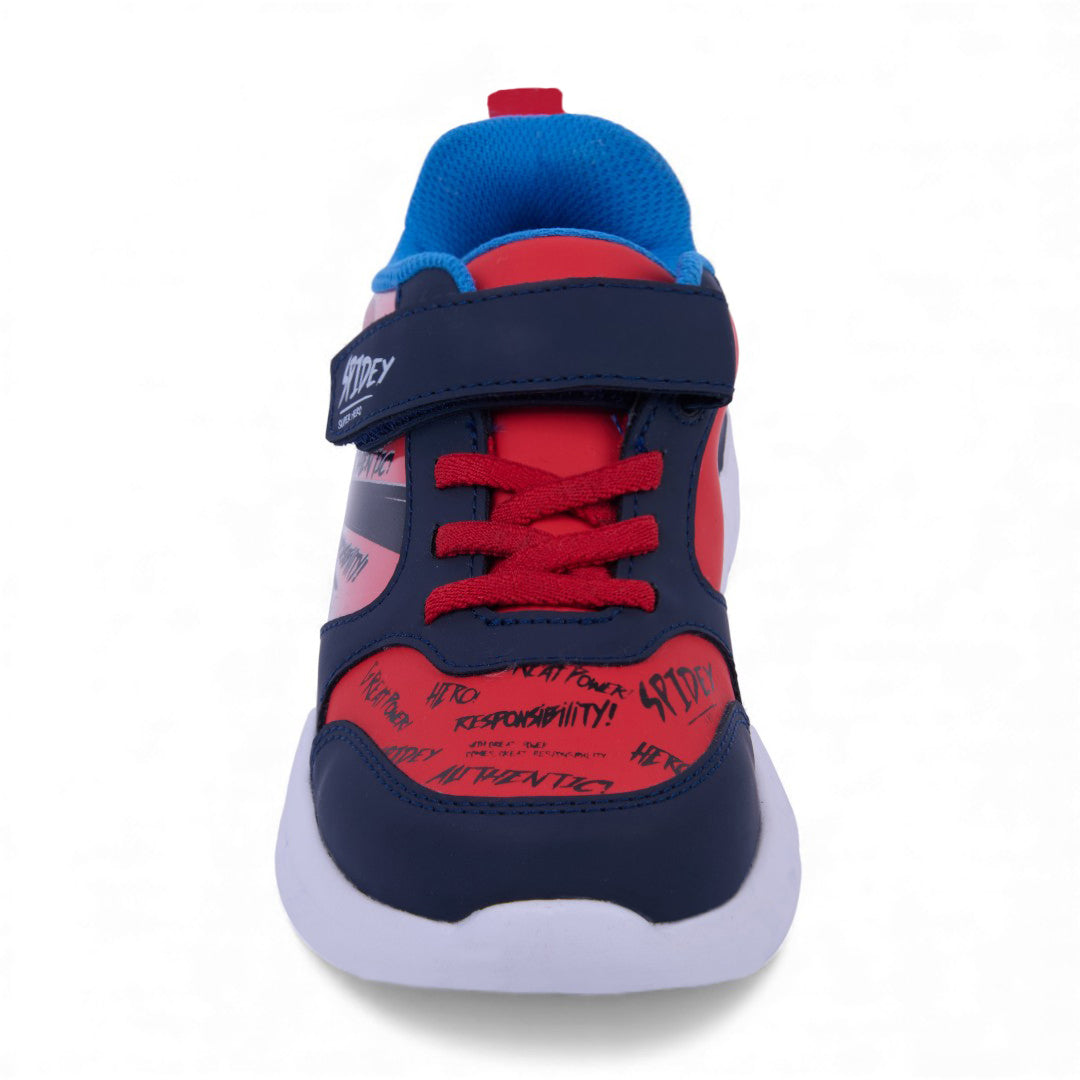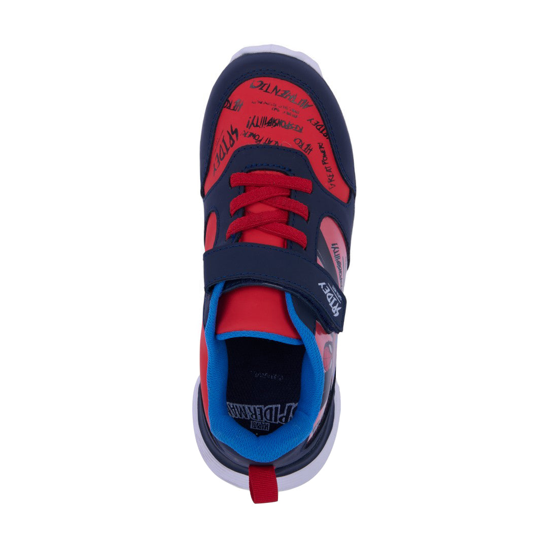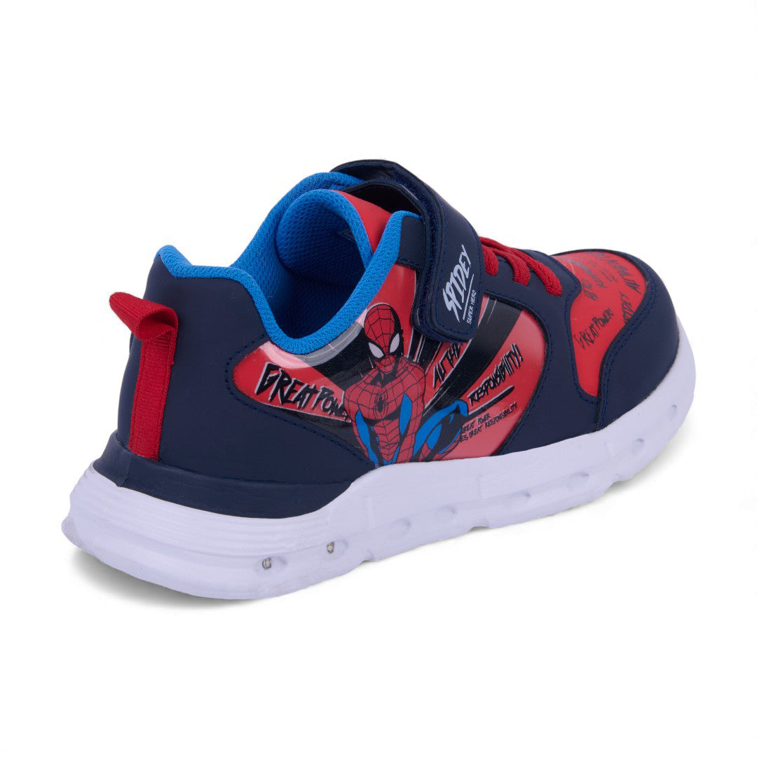 Tenis casual marino con estampado divertido, cintas y cierre con contactel, además de luces en la suela. Ligeros, cómodos y perfectos para looks infantiles dinámicos.