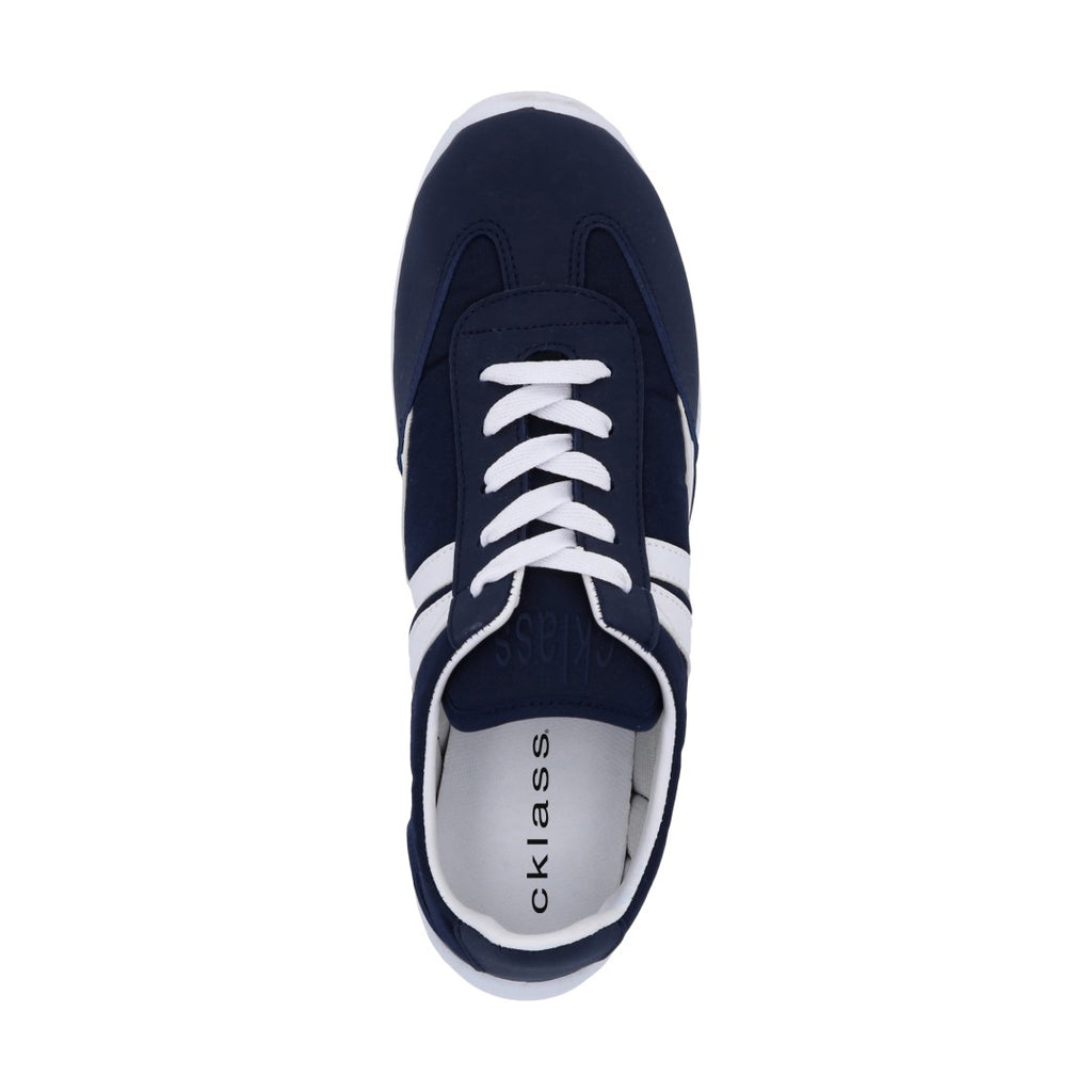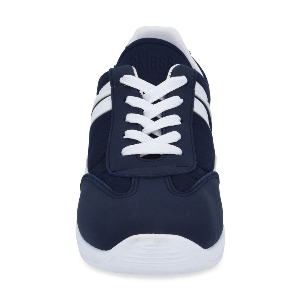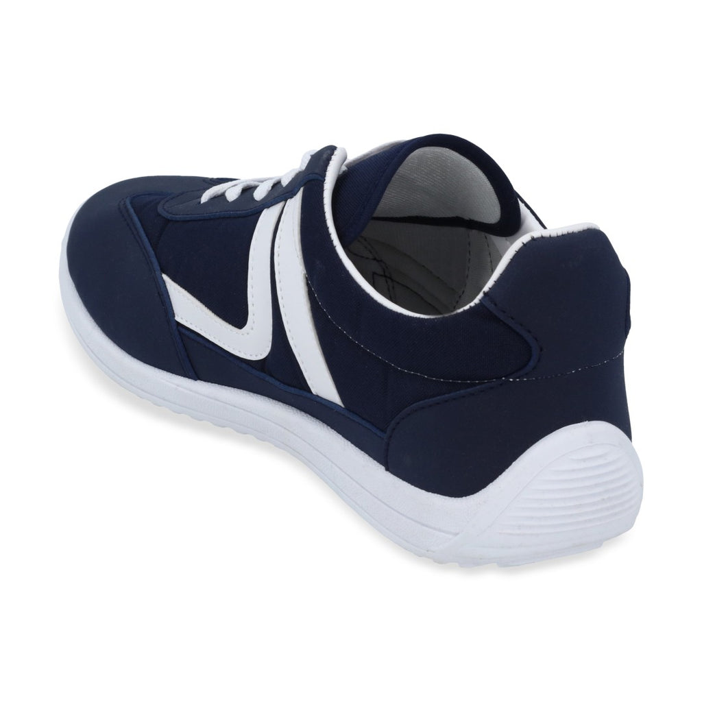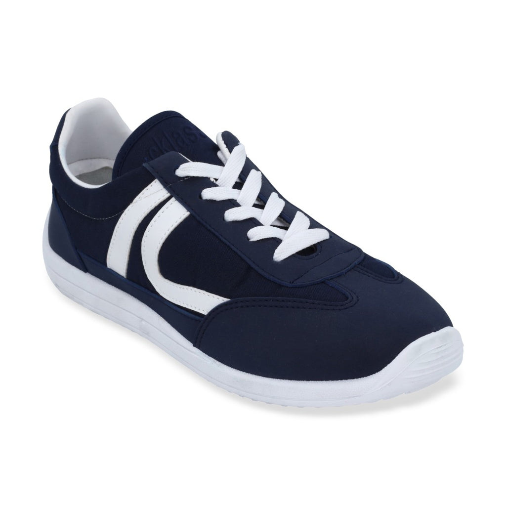Tenis urbano de piso con doble agujeta, diseño moderno y plantilla textil color azul y rojo para mayor confort. Ideal para el uso diario y combinaciones casuales.