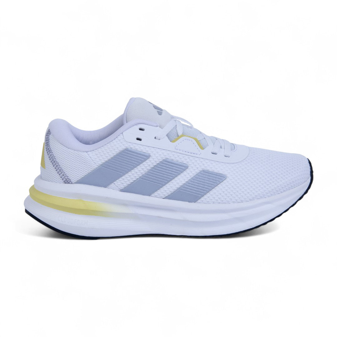 Tenis Adidas Running Galaxy en color blanco, diseñados para máximo confort y rendimiento. Confeccionados en corte textil transpirable con forro suave y media suela Cloudfoam que brinda amortiguación ligera y soporte duradero. Perfectos para correr, entrenar o uso diario con estilo deportivo y moderno.