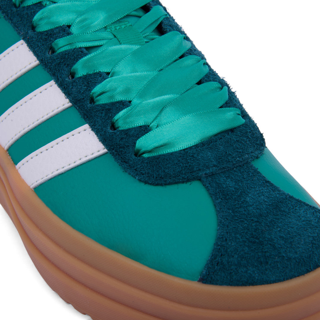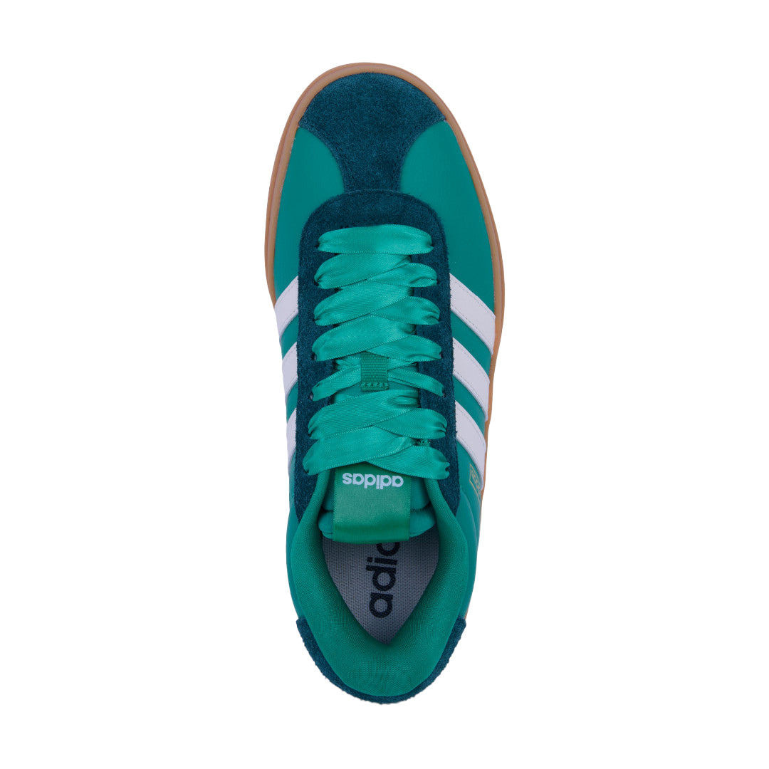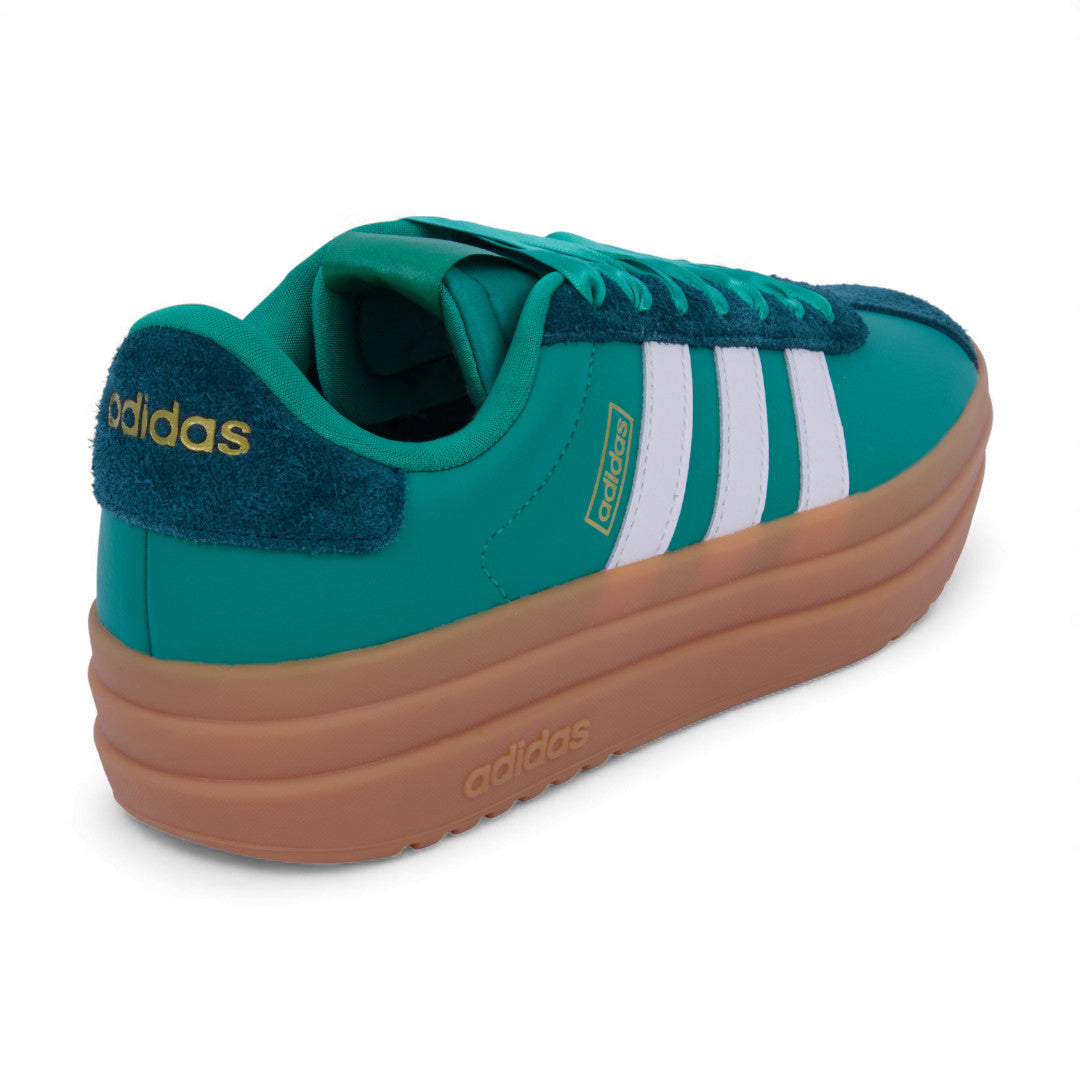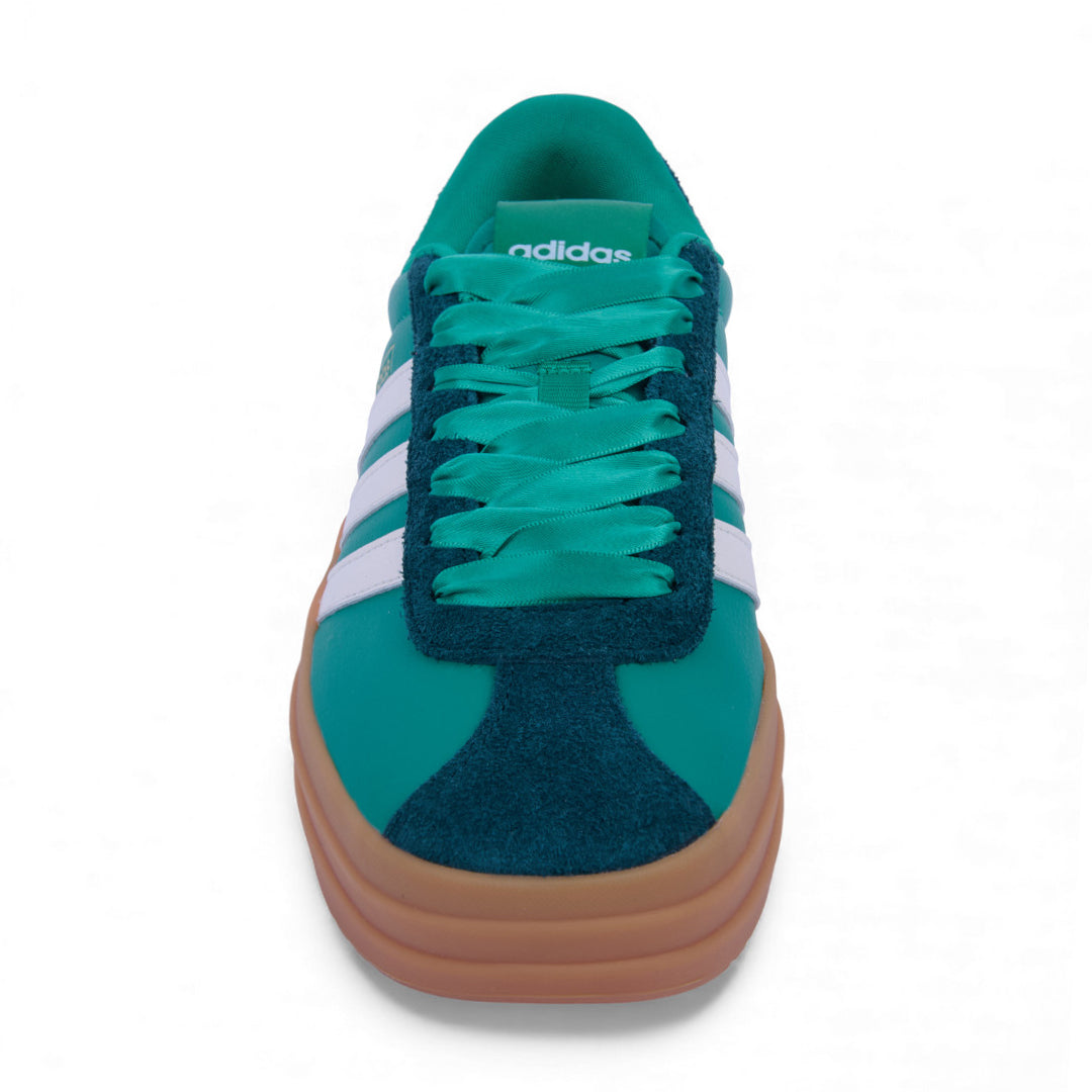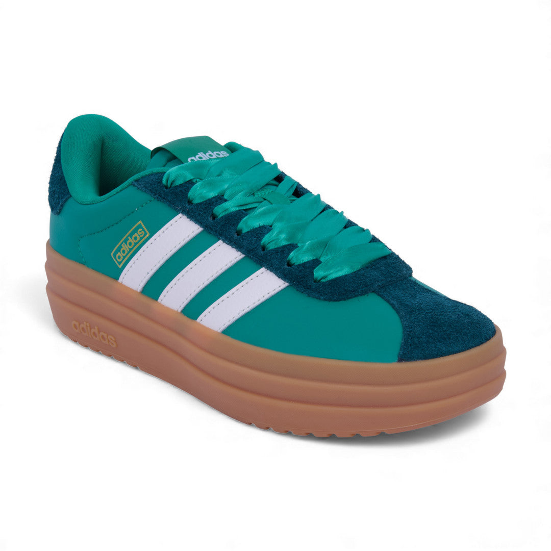 Tenis Adidas VL Court Bold verde para dama, fabricados en corte sintético con forro textil que brinda suavidad interior. Plataforma de 4.5 cm que suma altura con estabilidad, diseño moderno y urbano ideal para looks casuales, universitarios o streetwear. Un estilo audaz, cómodo y versátil para el día a día.