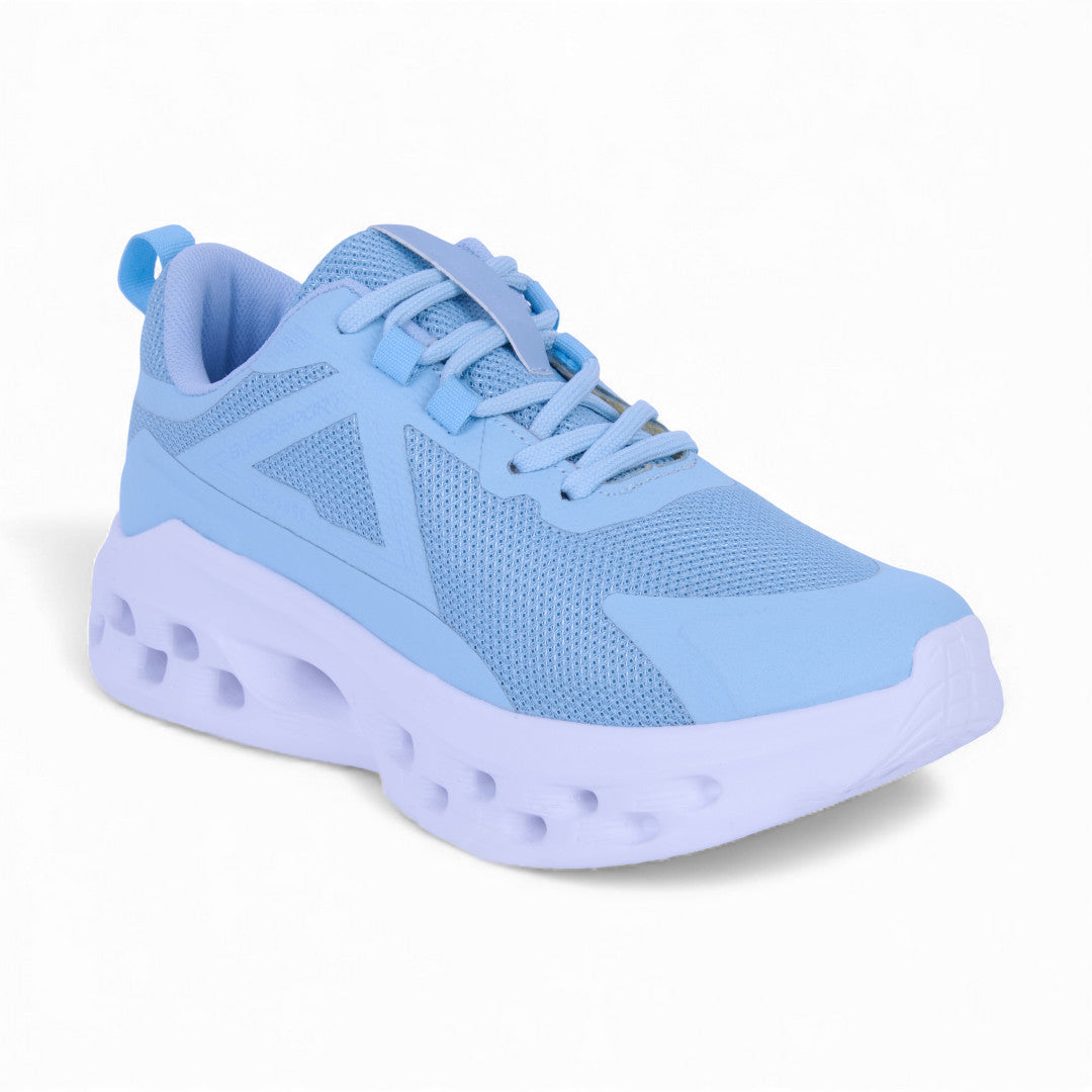 Tenis de dama SuperSport en color azul con tejido suave y plantilla memory foam; ligeros, cómodos y perfectos para uso diario.