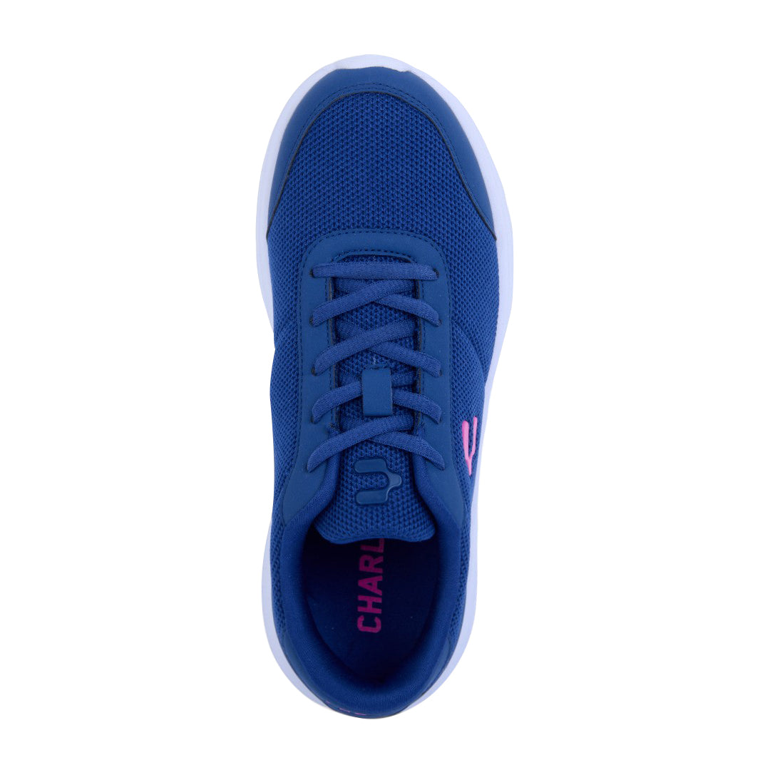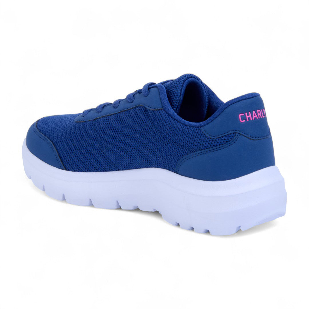 Tenis Charly marino monocromo con malla transpirable, cinta ajustable, jalador posterior y logos laterales; ligeros, cómodos y con suela antiderrapante.