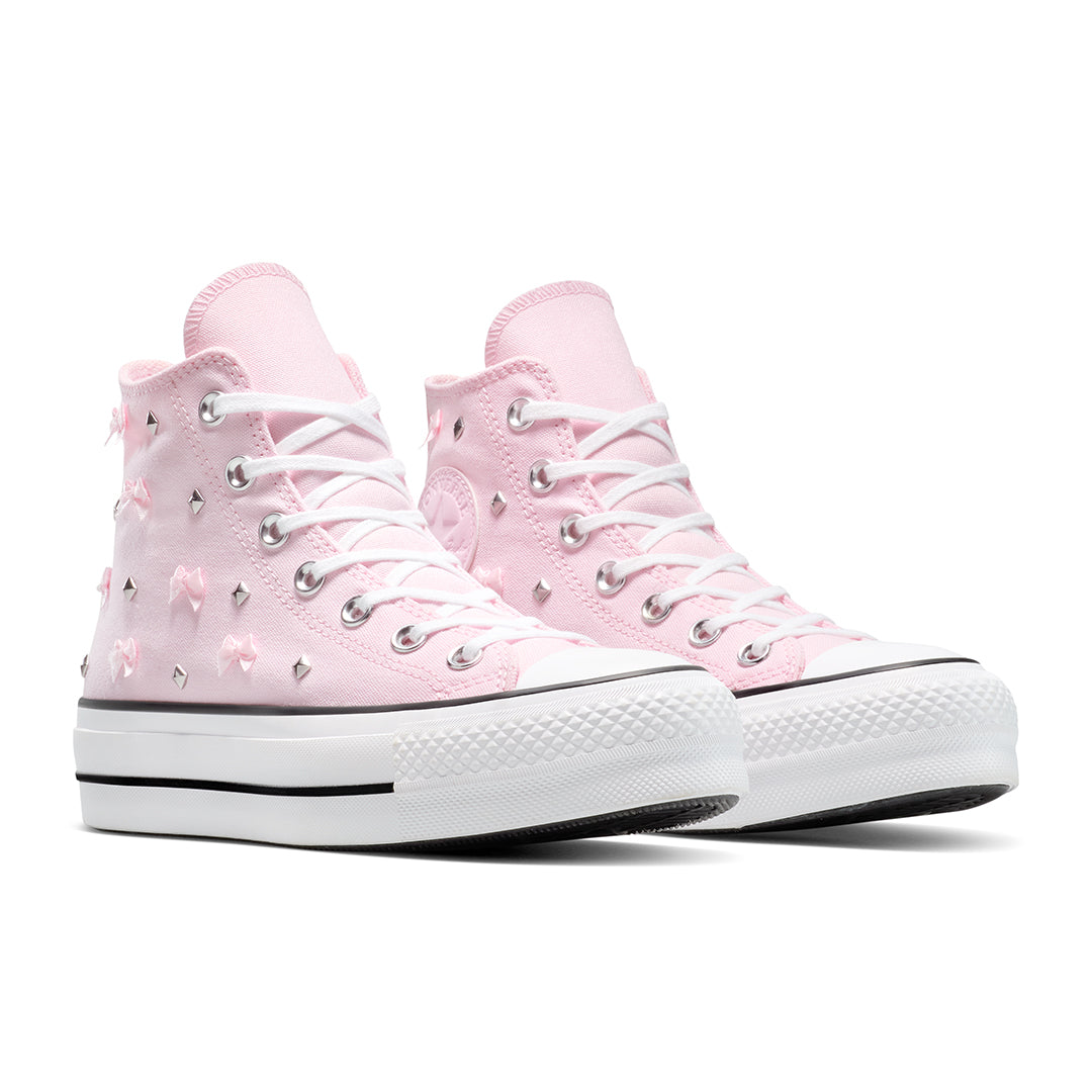 Tenis Converse Chuck Taylor con corte textil resistente, plataforma de 4 cm y acabado en tono rosa monocromático. Combina el estilo clásico de la marca con un toque moderno y femenino. Suela de goma duradera que brinda estabilidad y comodidad en cada paso. Ideal para looks casuales y urbanos.