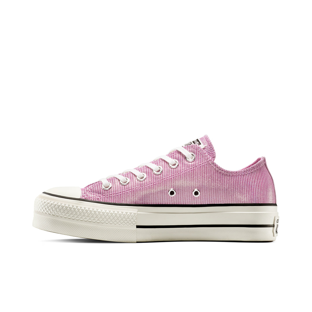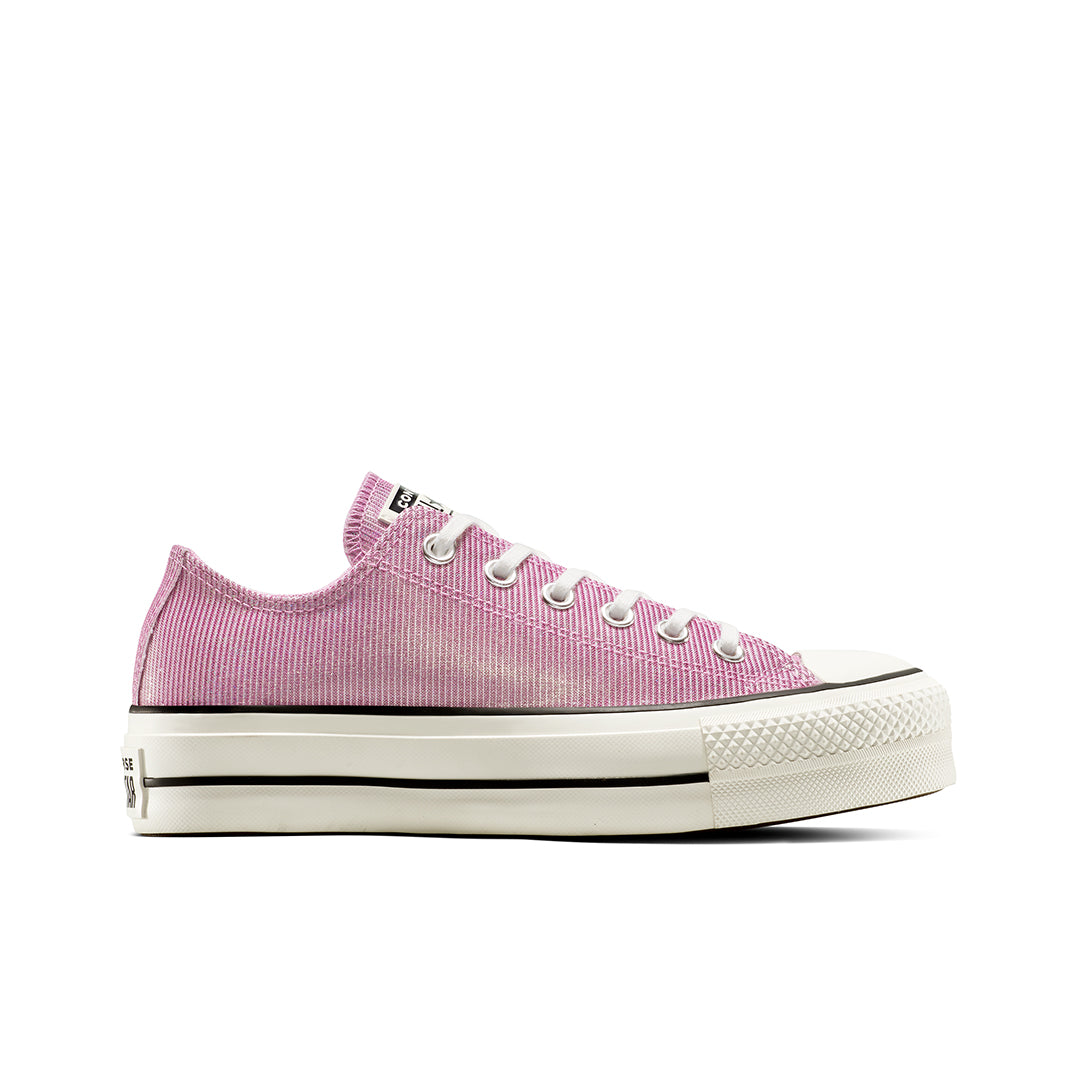 Tenis Converse de plataforma para dama, confeccionados en lona textil duradera con suela sintética de 4 cm que brinda estabilidad y estilo. Su diseño clásico y versátil se adapta a cualquier look urbano o casual, ofreciendo comodidad y un toque moderno a tu outfit diario.