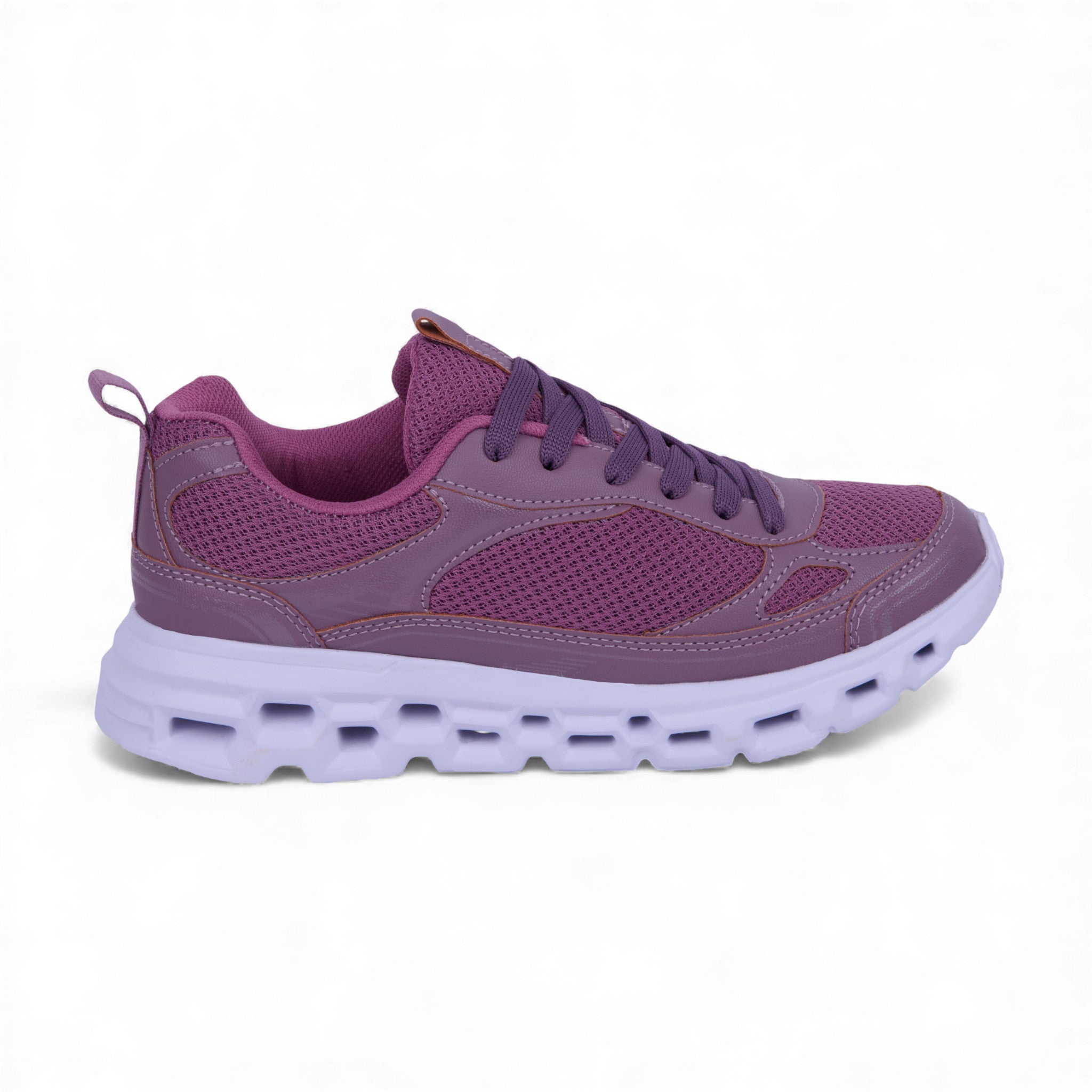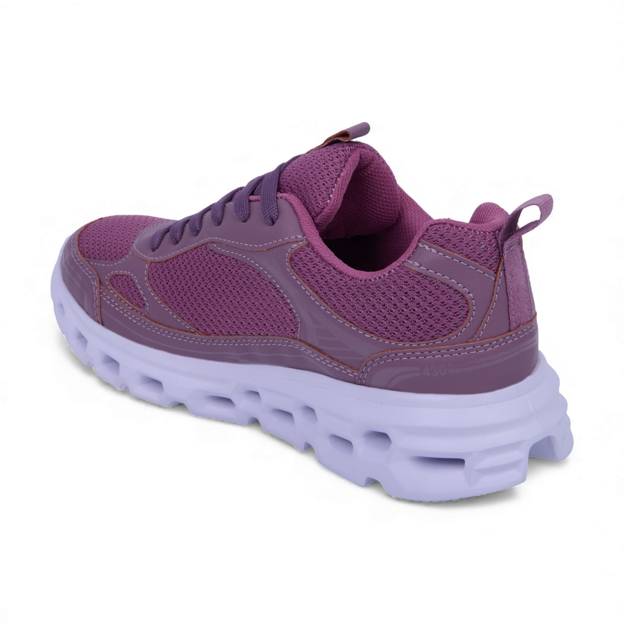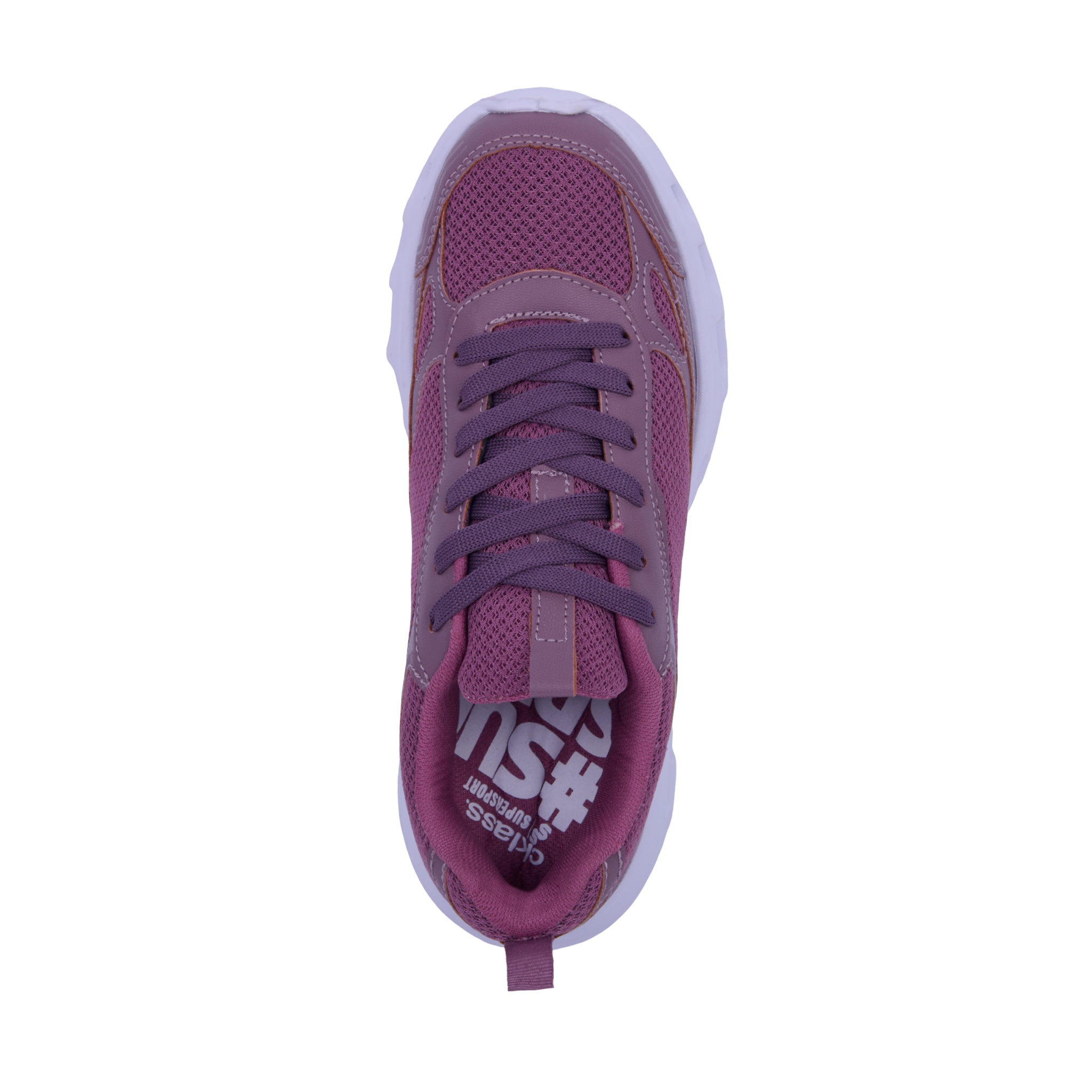 Tenis de piso color mauve elaborados con material sintético combinado con malla textil transpirable y cintas al frente. Plantilla textil suave y suela ligera ideales para uso diario.