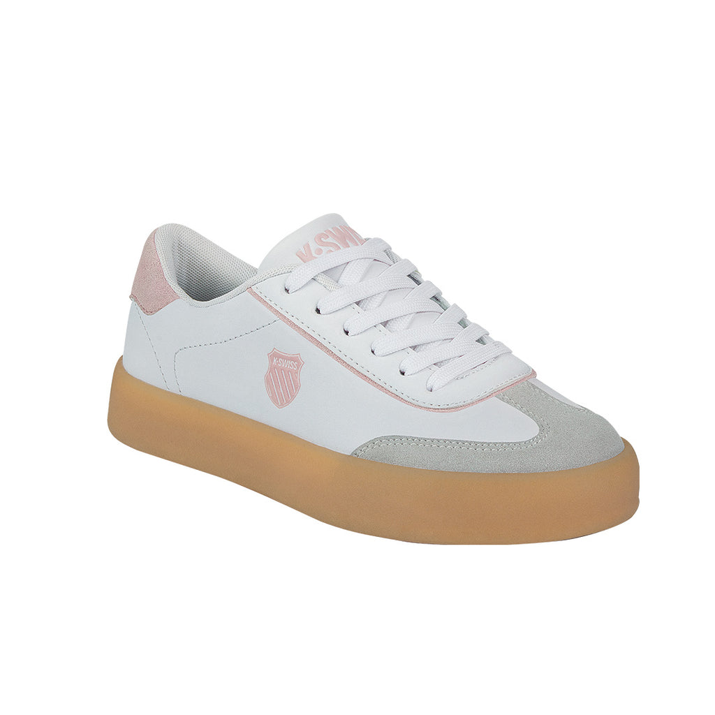 Tenis K-Swiss clásico multicolor para dama, con logo lateral, cordones ajustables y detalle rosa en talón. Suela color liga para mayor amortiguación. Perfectos como tenis casual mujer.
