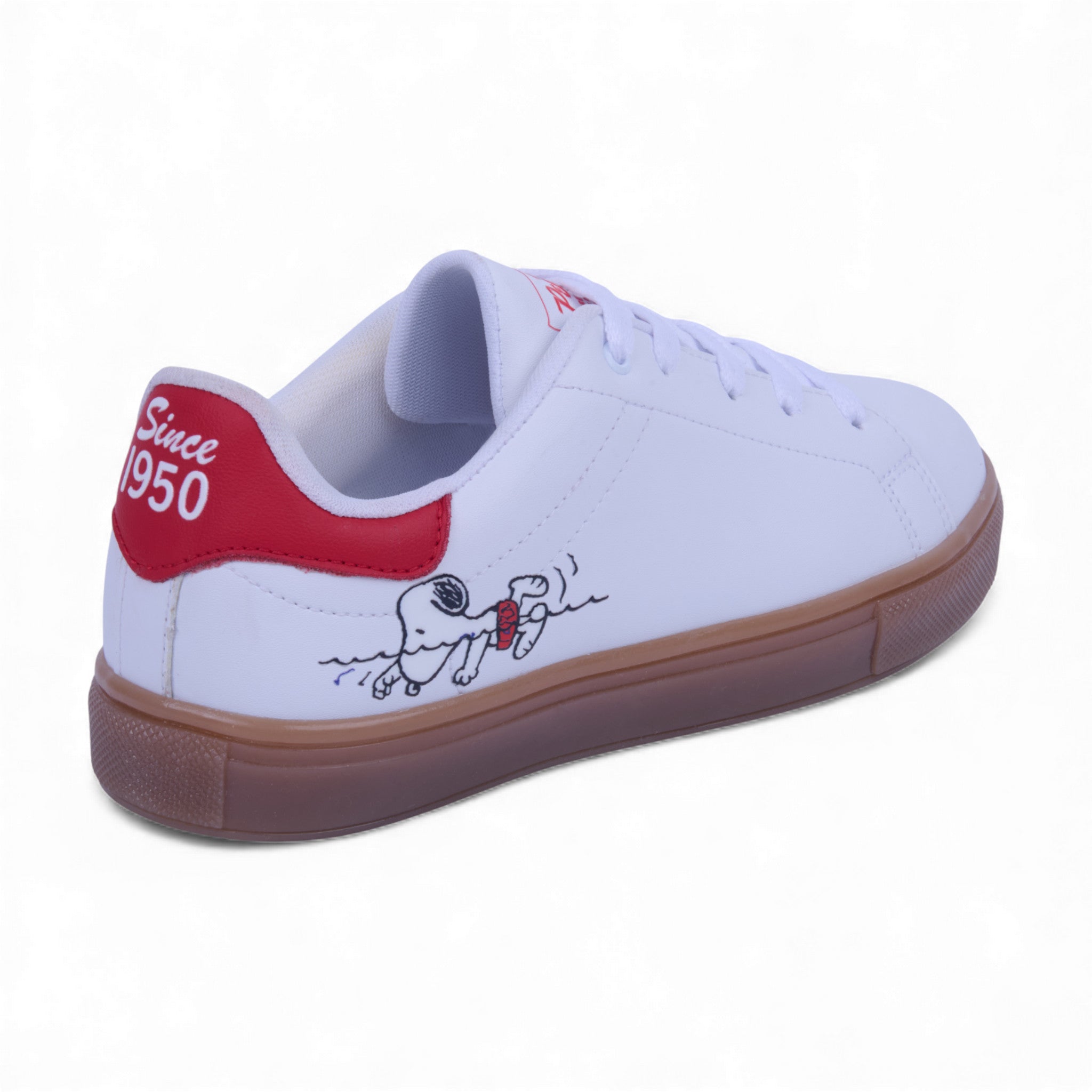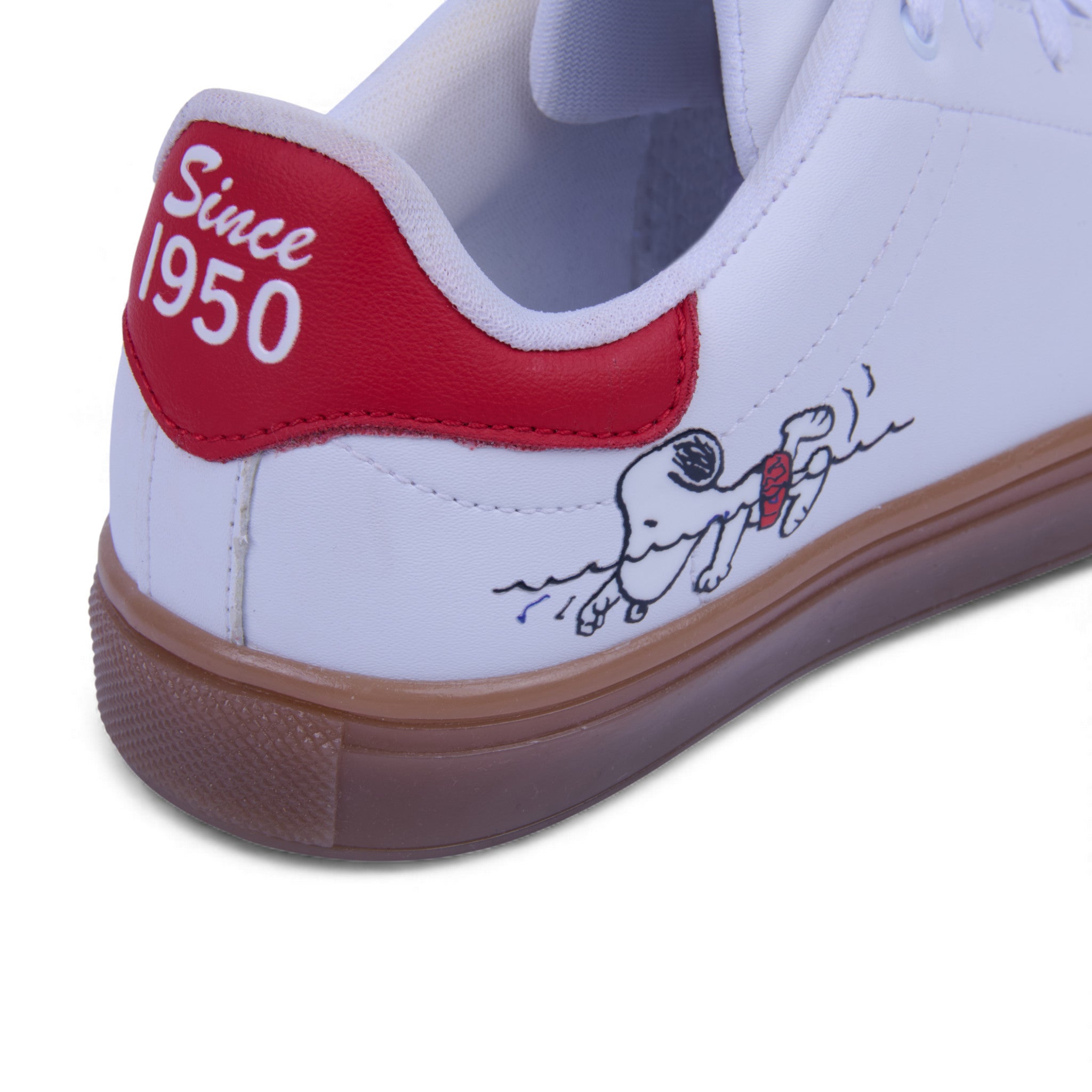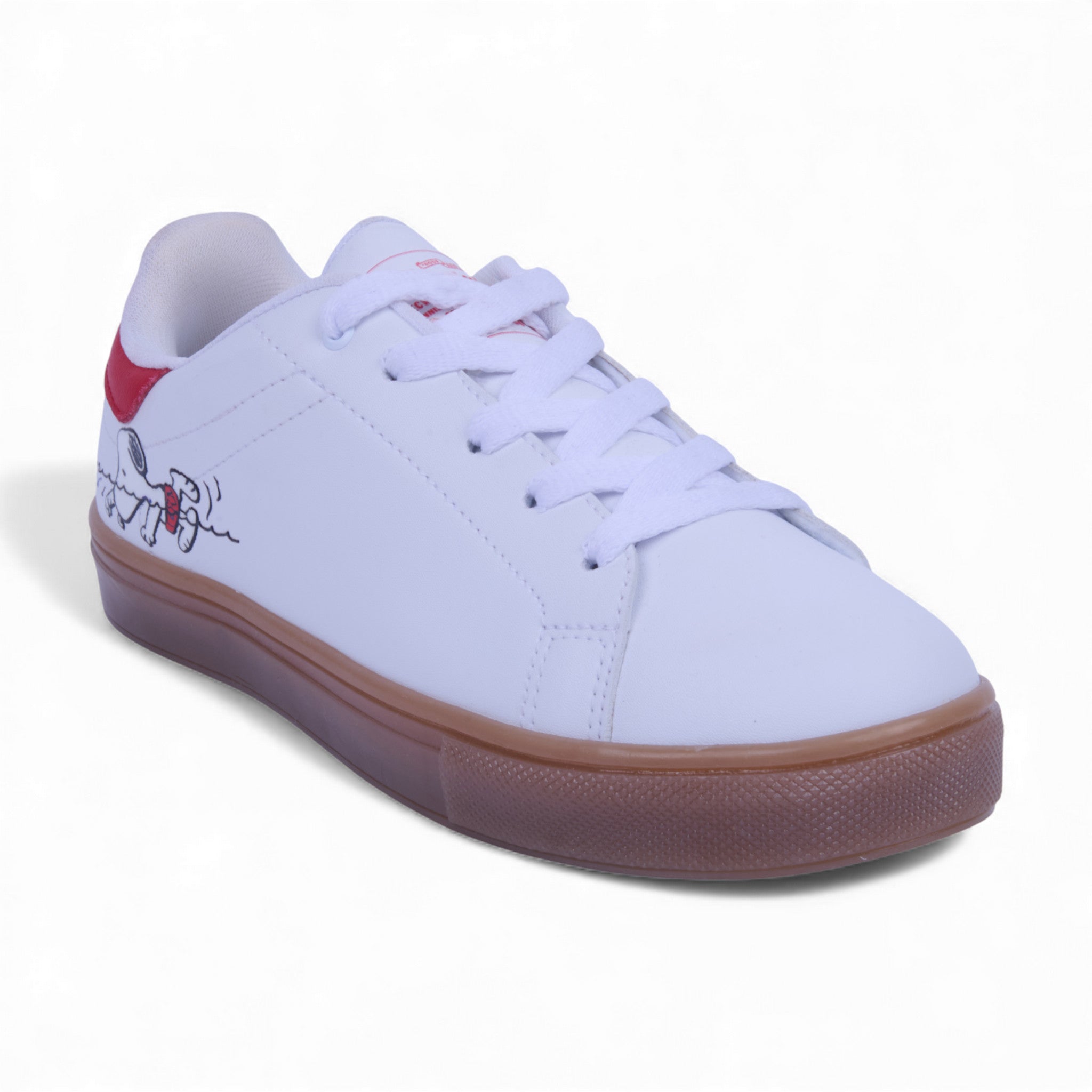 Tenis color blanco con gráfico de Snoopy en un costado. Fabricado en corte sintético con forro textil suave que brinda comodidad y ligereza. Su estilo casual y divertido lo convierte en el calzado perfecto para los amantes de Peanuts que buscan un look moderno, juvenil y con personalidad.