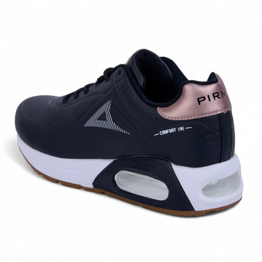 Tenis de dama Pirma con burbuja de aire para absorción de impacto, diseño moderno y ajuste con agujetas; ideales para entrenar o caminar cómodamente.