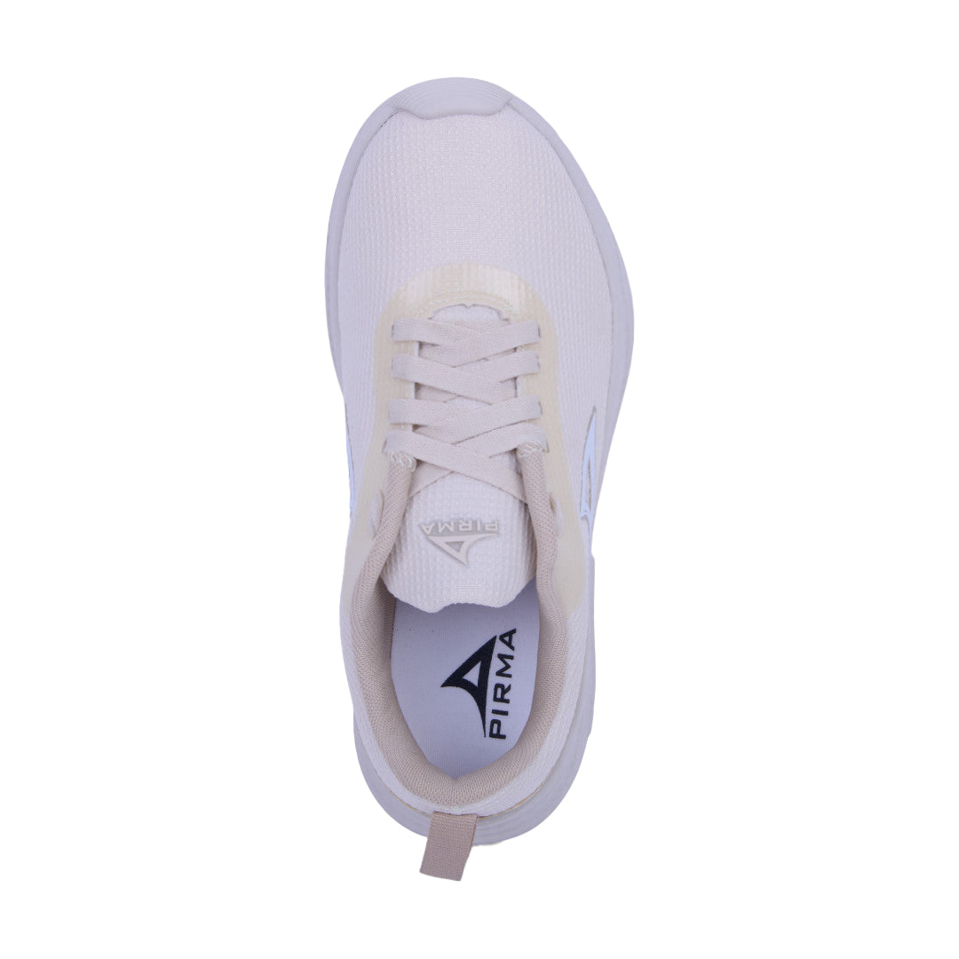 Tenis deportivo de dama Pirma en tono ivory con suela ligera y agujetas ajustables; cómodos, modernos y perfectos para ejercicio o uso diario.
