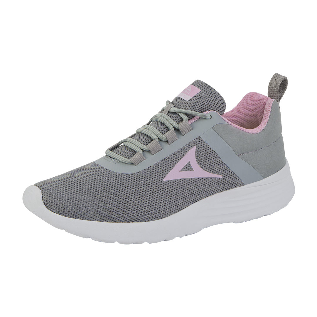 Tenis Pirma textil con diseño semiabierto y de malla transpirable; detalle de suela con amortiguación suave y cintilla elástica con jalador posterior.