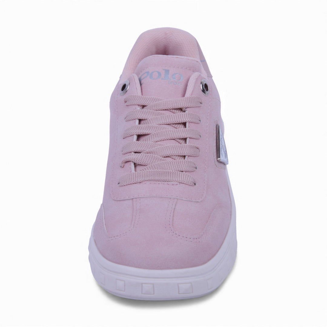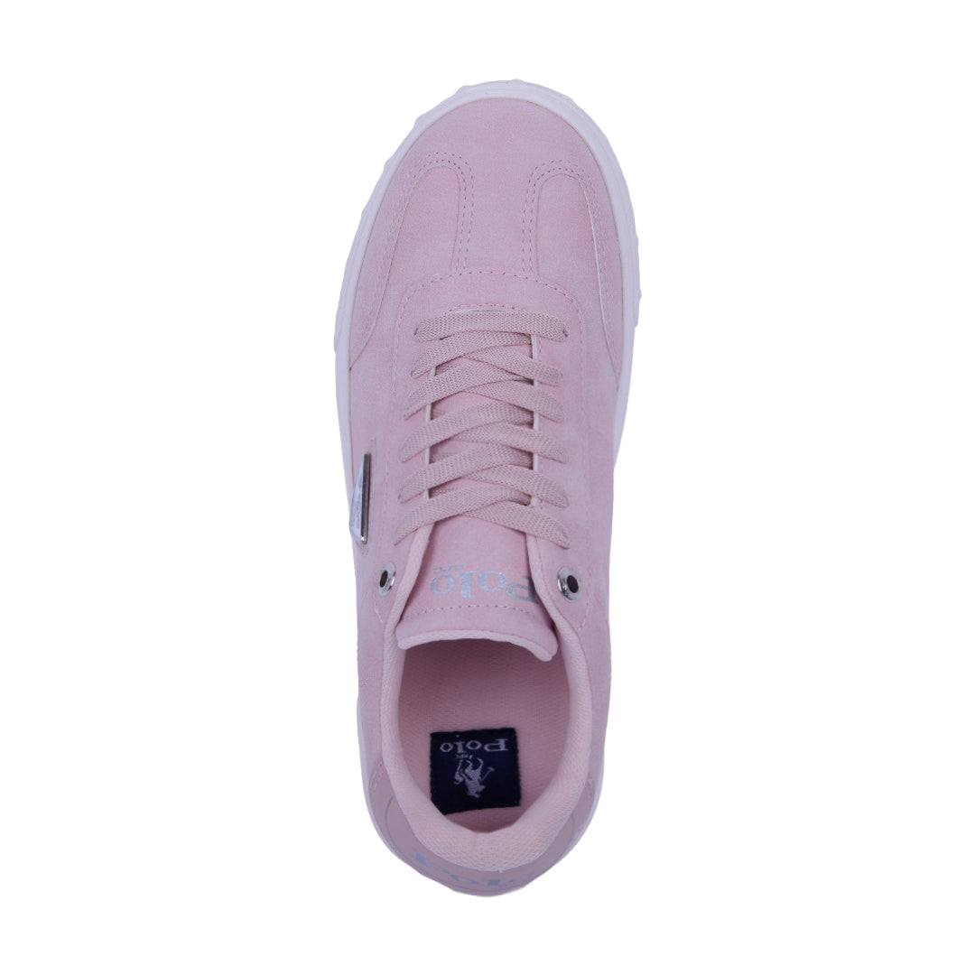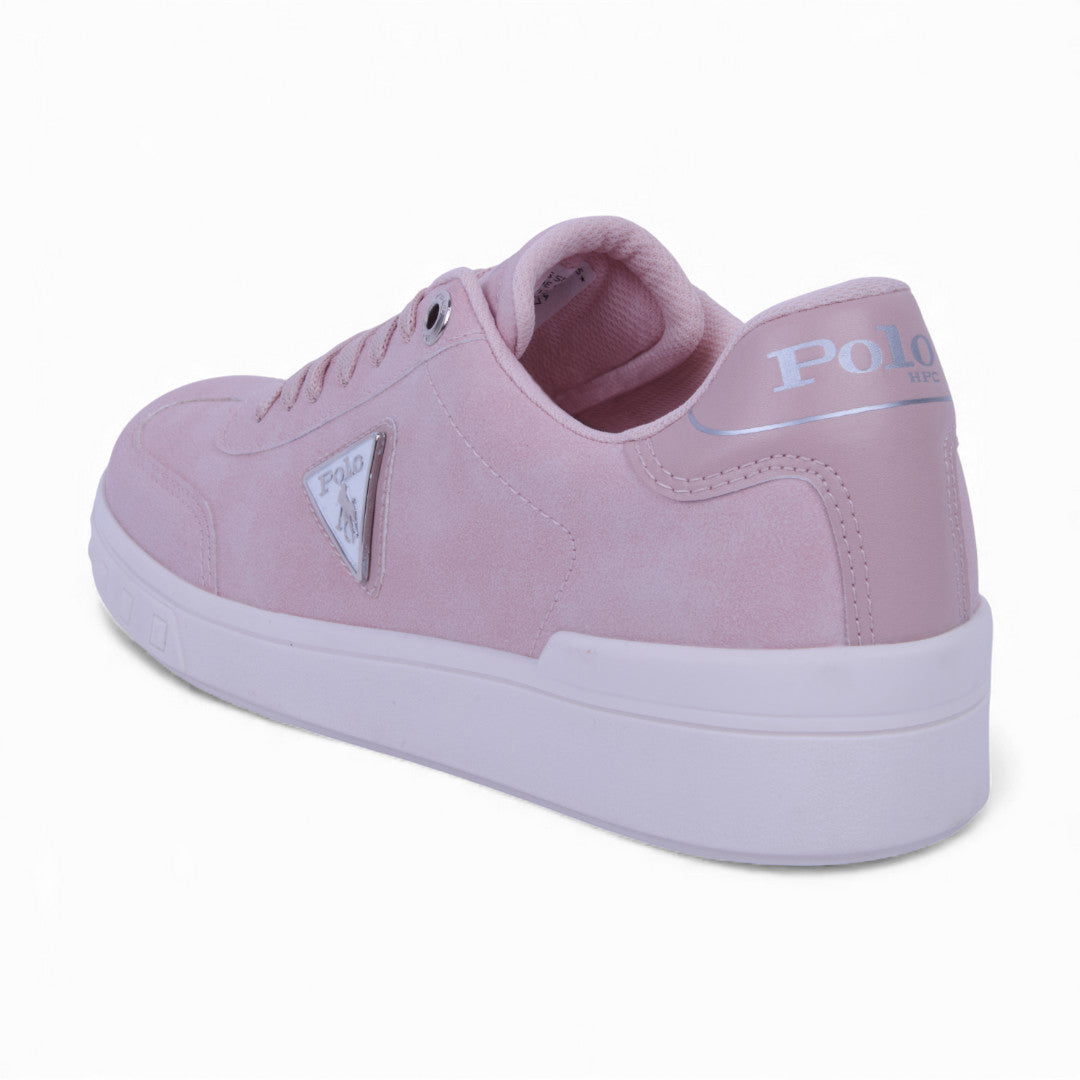 Tenis Polo para dama en estilo choclo color rosa, fabricados en material sintético ligero. Incluyen cinta ajustable para un ajuste firme y cómodo, además del logotipo lateral que aporta un toque distintivo. Ideales para looks casuales, escolares o de uso diario con estilo fresco y femenino.