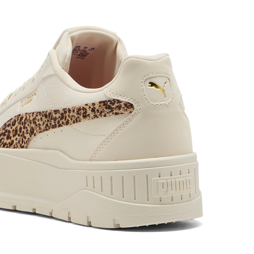 Tenis Puma ivory con plataforma de 4 cm, cintas ajustables y detalle de marca en lengüeta; diseño moderno, estilizado y cómodo ideal para elevar cualquier look casual.