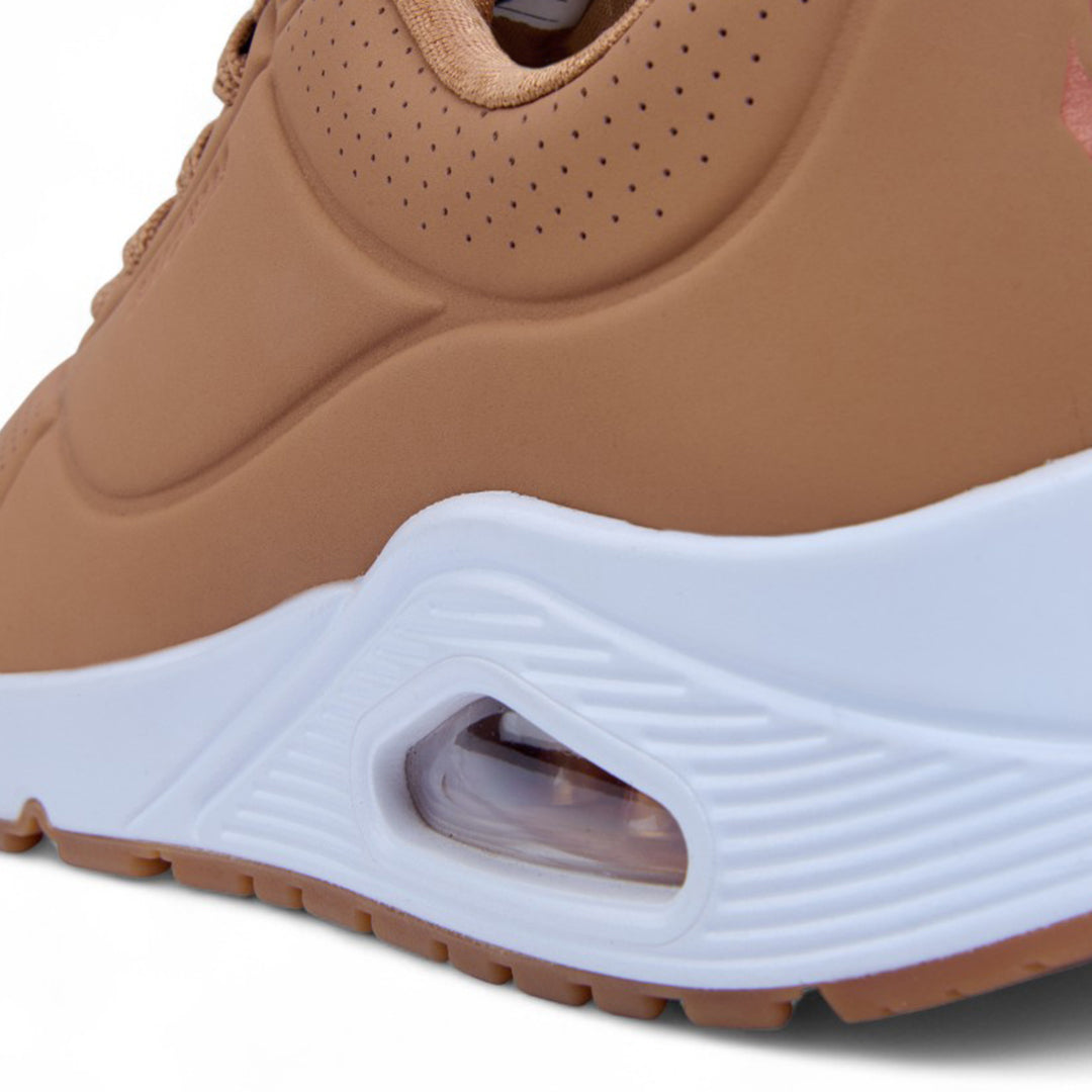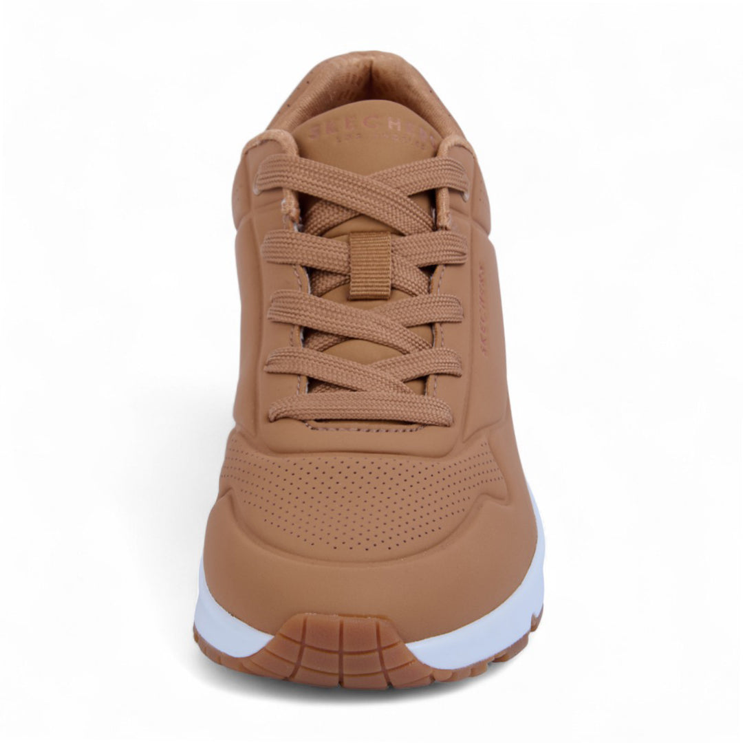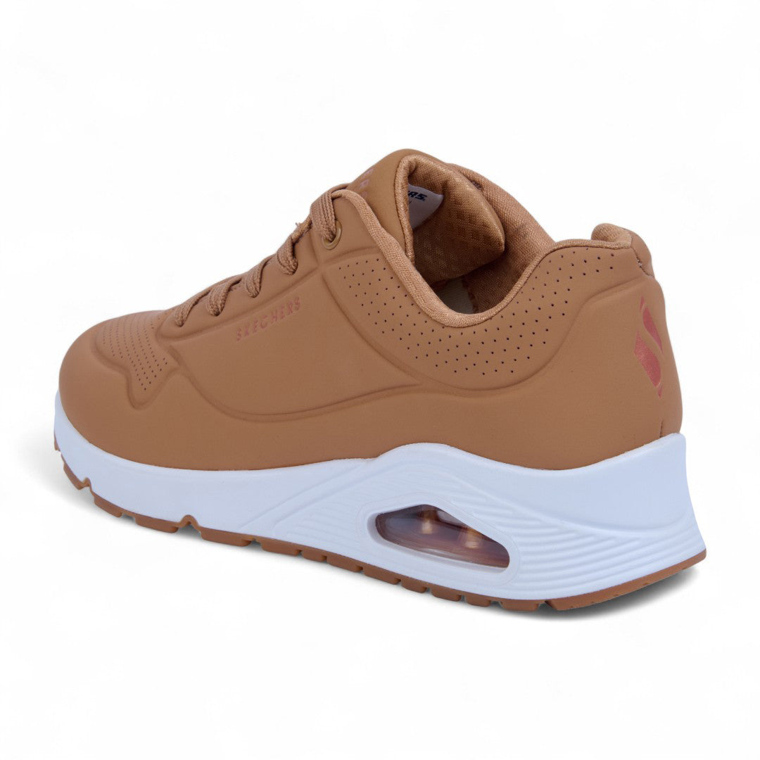 Tenis Skechers Miel para dama en color negro, elaborados en material sintético con terminado de alta frecuencia. Incluyen agujetas ajustables, suela con burbuja de aire para amortiguación ligera y plantilla memory foam que brinda comodidad superior. Diseño moderno, deportivo y perfecto para uso diario.