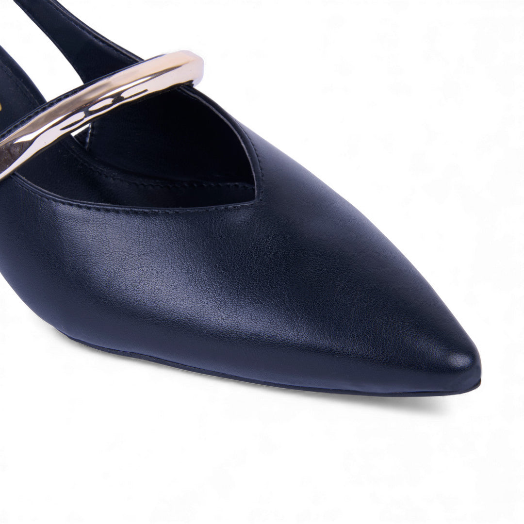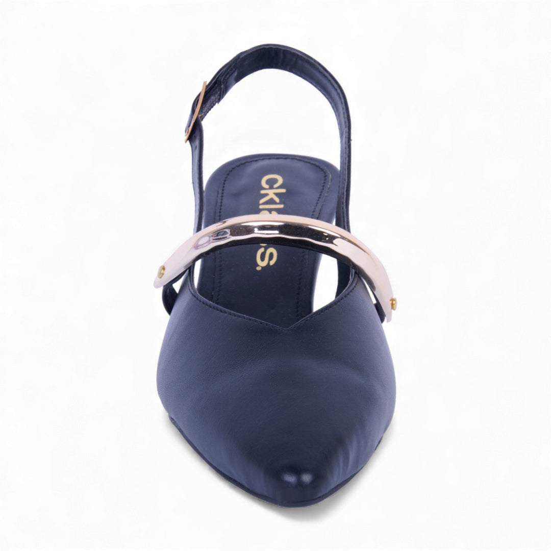 Zapatilla negra destalonada de 6 cm con látigo ajustable y plantilla sintética; estilo moderno, versátil y elegante para ocasión casual o formal.