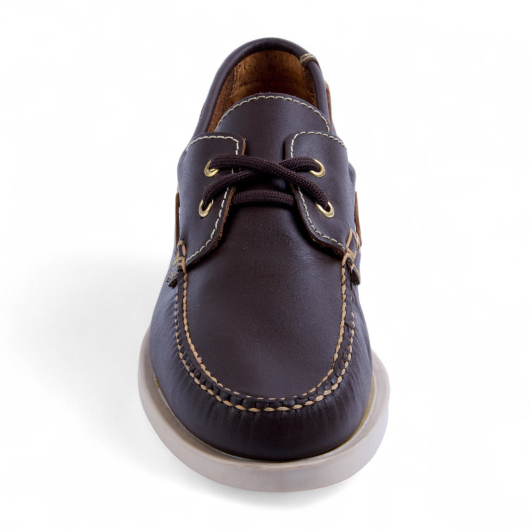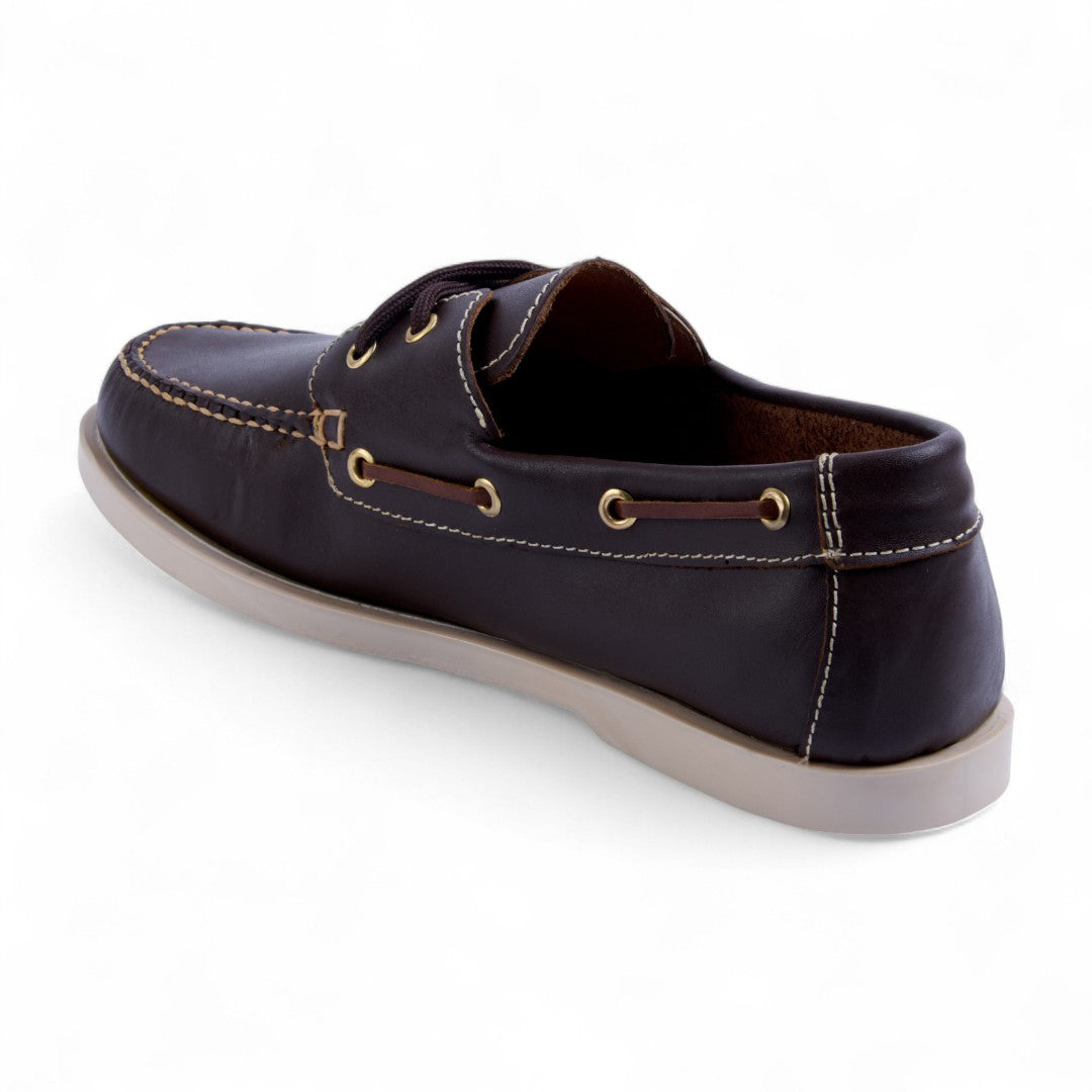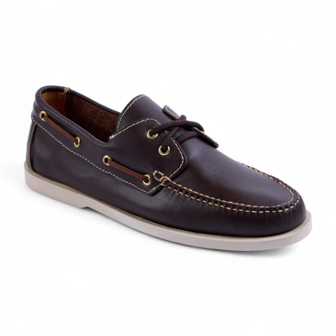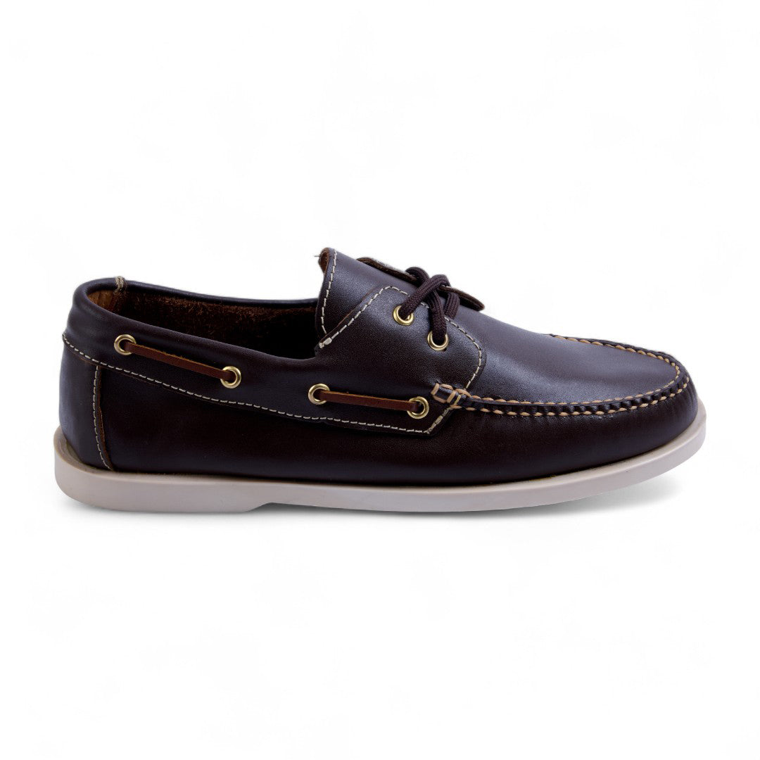 Choclo color café de piso tipo driver, confeccionado en piel genuina con agujetas frontales para un ajuste perfecto. Cuenta con plantilla de piel porcina que brinda suavidad y confort, además de suela flexible y resistente ideal para el uso diario. Perfecto para combinar con atuendos casuales o semi formales.