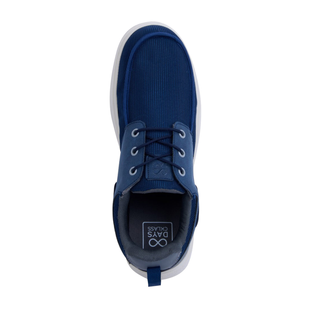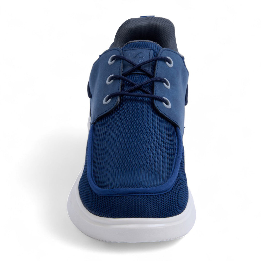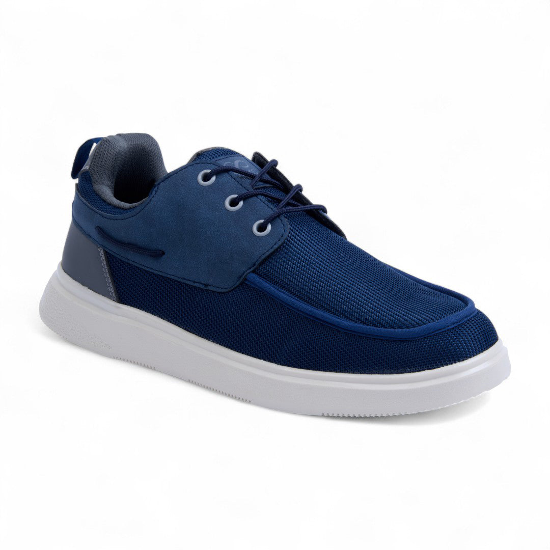Choclo color marino de piso confeccionado en material textil con detalles en contraste y cintas frontales para un ajuste cómodo. Incluye plantilla textil acolchada que brinda confort durante todo el día. Su diseño versátil combina estilo casual y moderno para cualquier ocasión.