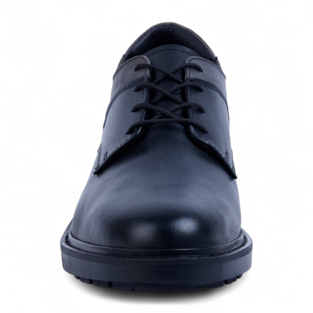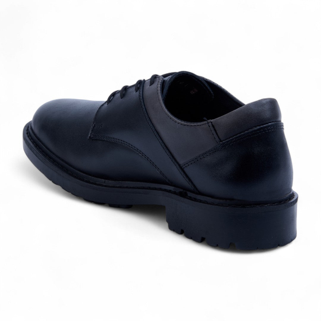 Choclo formal de piso color negro elaborado en piel vacuno de alta calidad. Diseño clásico con cintas ajustables y plantilla sintética que brinda confort y soporte durante todo el día. Su suela resistente y acabado elegante lo convierten en el calzado ideal para entornos laborales, formales o de vestir con estilo atemporal.
