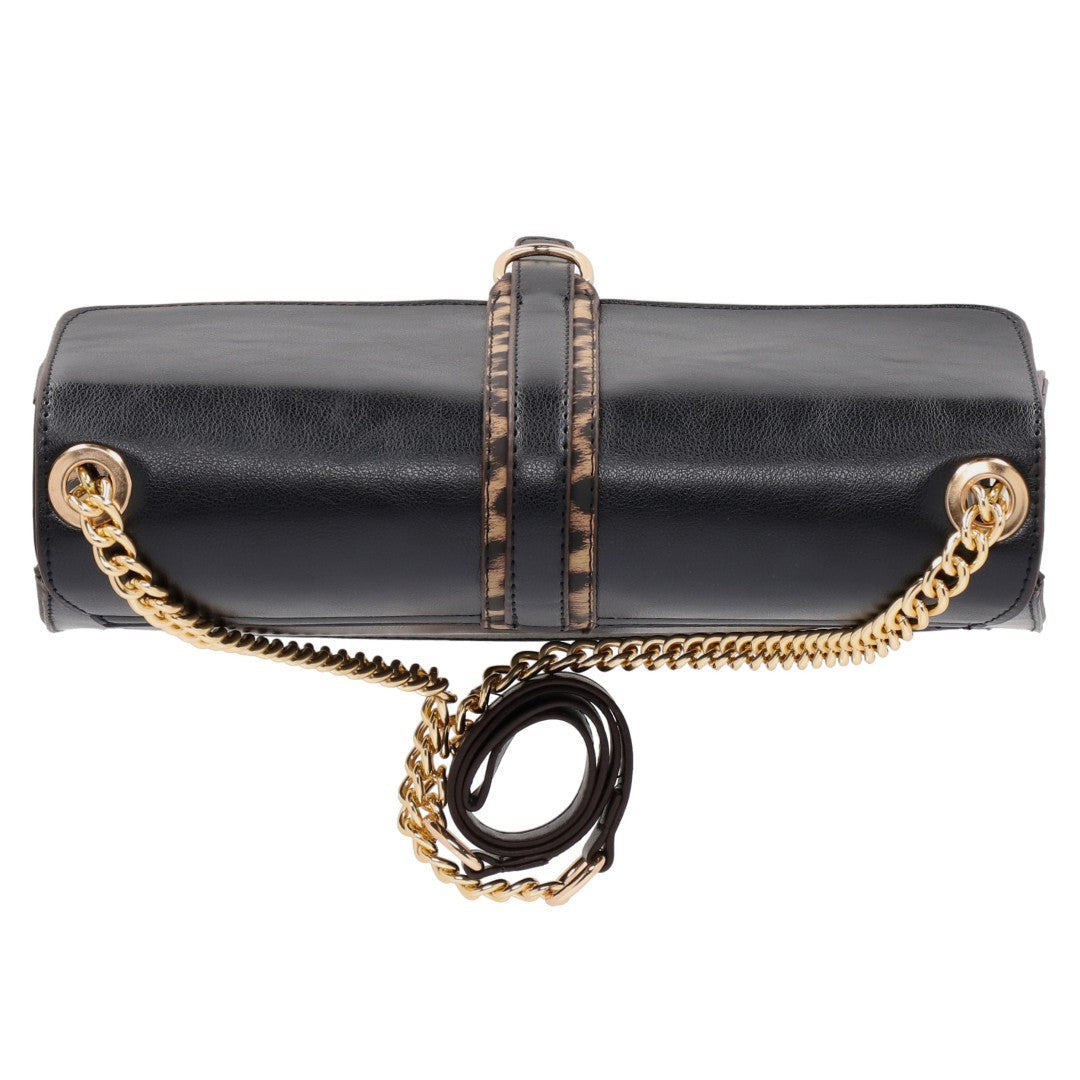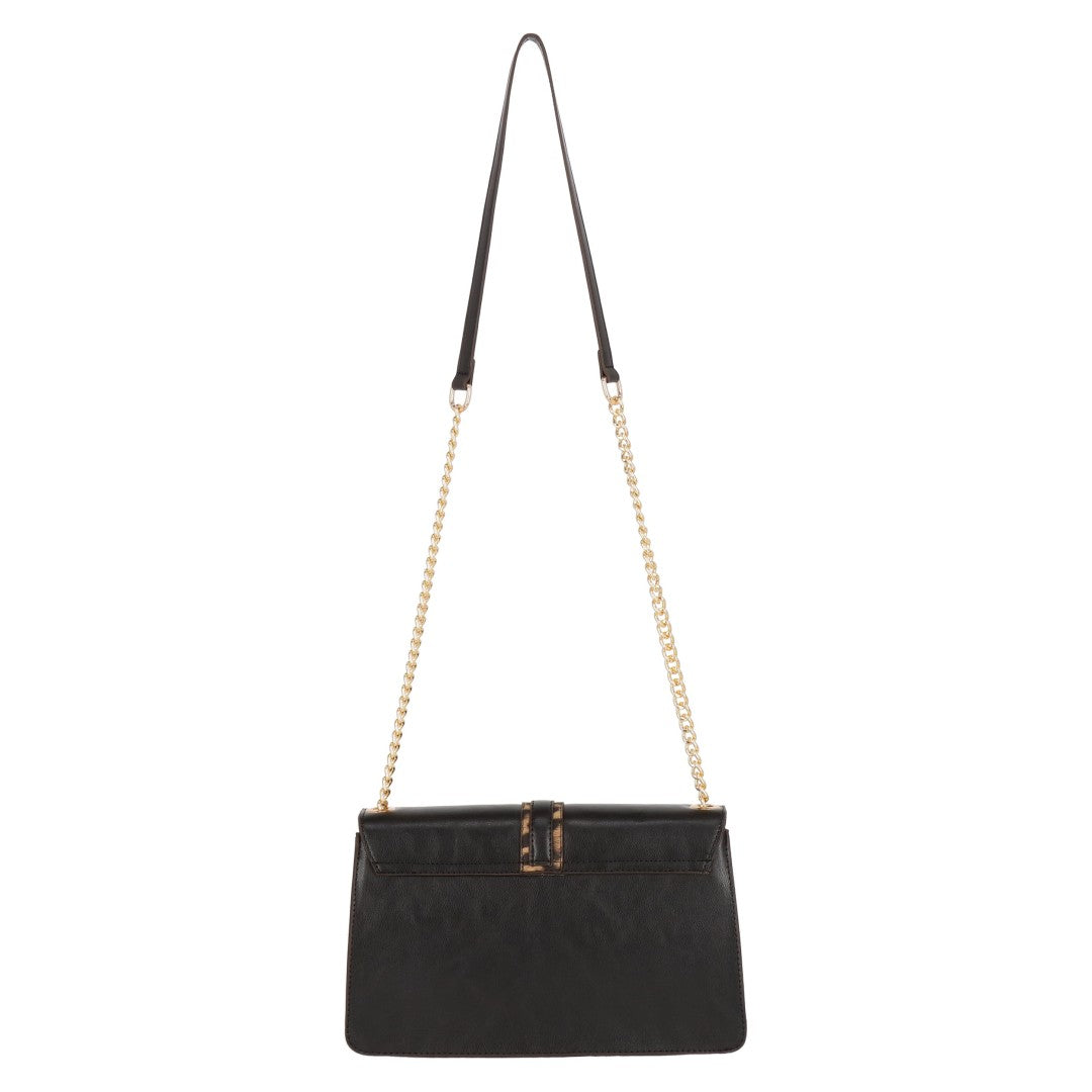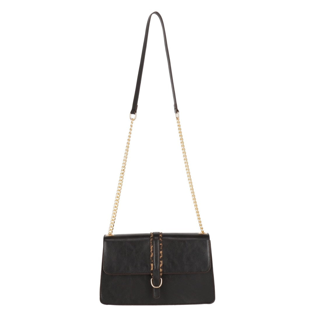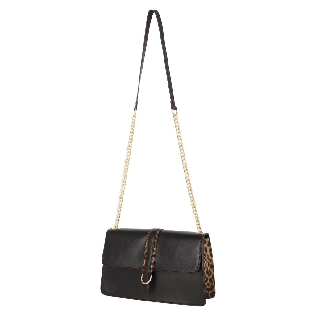 Bolso crossbody para dama con detalle animal print en costados y látigo central, asa de cadena dorada. Fabricado en material sintético de alta calidad. Perfecto como bolso casual mujer, combina estilo moderno con funcionalidad.